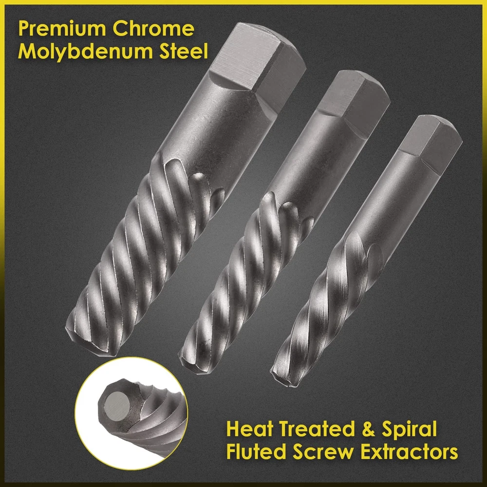 Screw Extractor Set for Easy Out Bolt Removal with Multispline and Spiral Design
