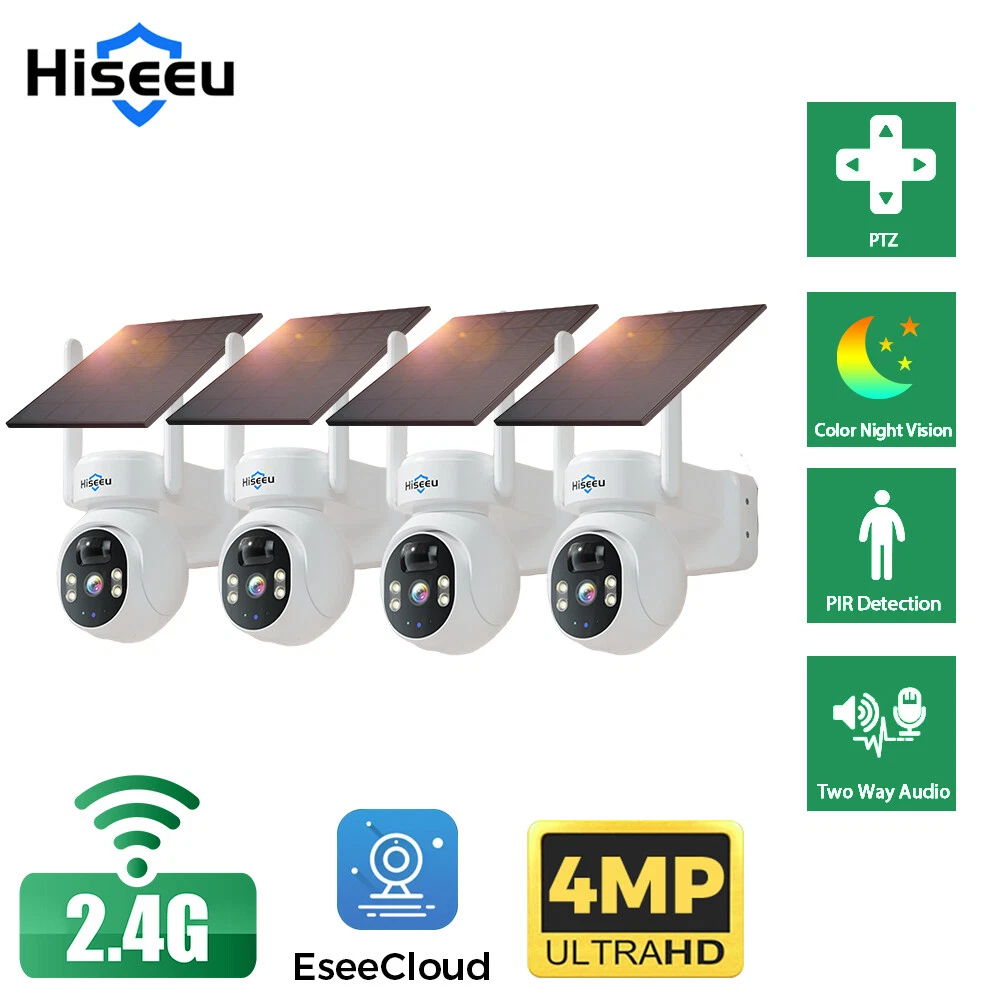 ***100% Wire-Free & Easy to Install: You don't need to install any power socket for the camera. The security camera was been charged through the solar panel, it will work for about 30 days after fully charged. ***No Monthly Fee & Local Recording: The solar camera supports SD card storage (up to 128Gb, not included), you don't need to pay any fee for storage. All recording can be stored for about 30 days, so you won’t missed any event. ***PIR Detection & Two-Way Audio: The wireless solar camera will push an alarm notification to APP when detecting humans' movement. You can chat through the it, or scare off unwelcome people through spotlight or siren alarm. ***Full Color Night Vision & Infrared Night Vision: You can set different night vision modes through APP according to your needs. The camera provides all details within 65 feet clearly even at night. ***APP Remote & Share with Family: You can share the solar security camera to you family through "Eseecloud" APP, all images are encrypted, no one can access the information without your consent.