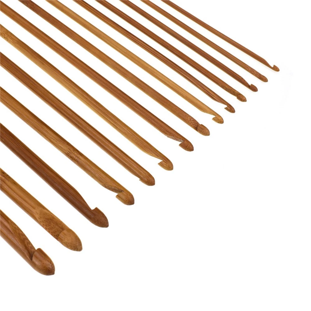 14Pcs Eco-Friendly Bamboo Crochet Hooks Set for Knitting and Yarn Crafts
