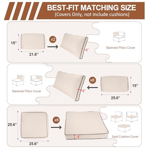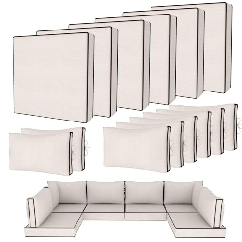 Number of Items: 1 Item Height: 6.42 Country of Origin: China gtin13: Does Not Apply Item Weight: 9.55 pounds Color: Cream+black Piping Item Length: 15.71 Product Care Instructions: Hand Wash Only Type: Does Not Apply Closure Type: Zipper, Ties Item model number: Outdoor Patio Cushion Covers Material: Polyester Recommended Uses For Product: Wicker Rattan Patio Furniture Manufacturer: Does Not Apply Customer Reviews: 4.4 out of 5 stars Package Dimensions: 15.71 x 13.07 x 6.42 inches Special Feature: Fade Resistant, Weather Resistant, UV Resistant Brand: Does Not Apply Pattern: Solid Date First Available: January 14, 2025 MPN: Does Not Apply EAN: Does Not Apply Unit Count: 1.0 Count Size: 25.6"L x 25.6"W x 4"H -14 covers Fabric Type: 80%polyester Style: Modern Item Width: 13.07 Shape: Rectangular UPC: Does Not Apply