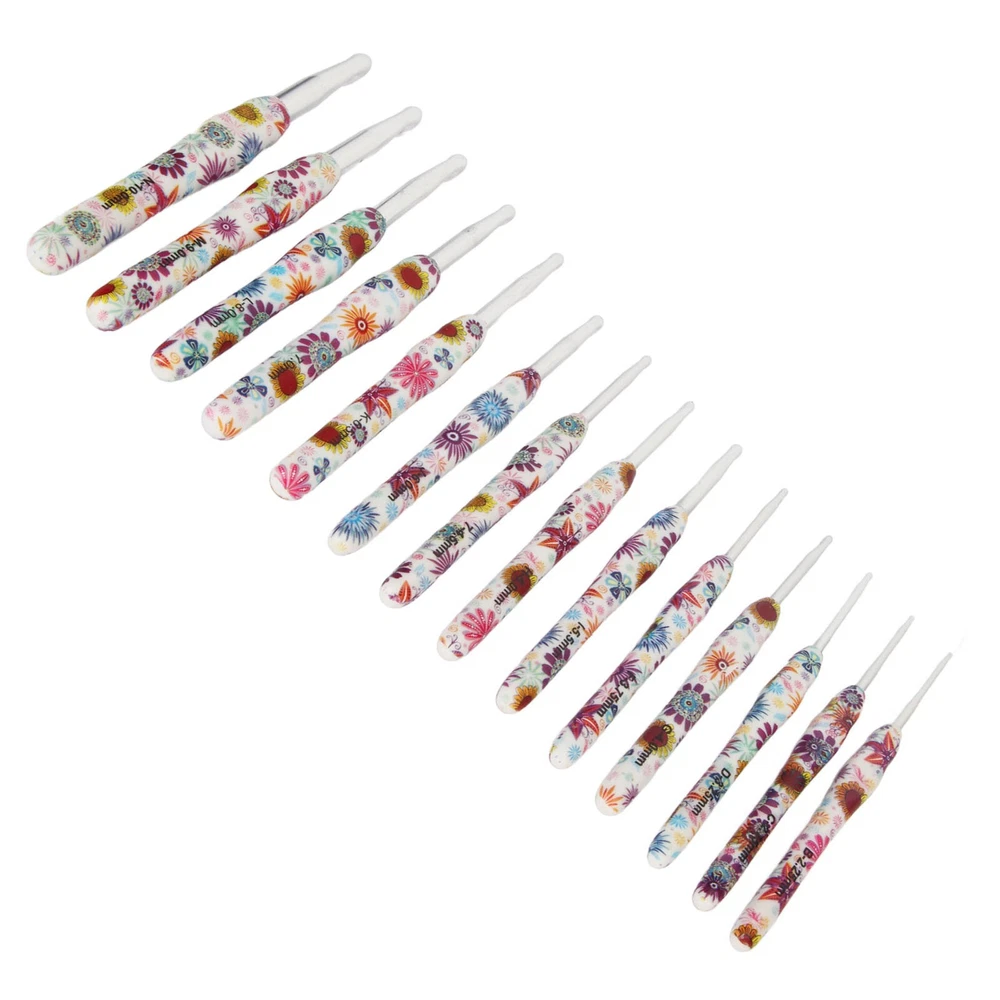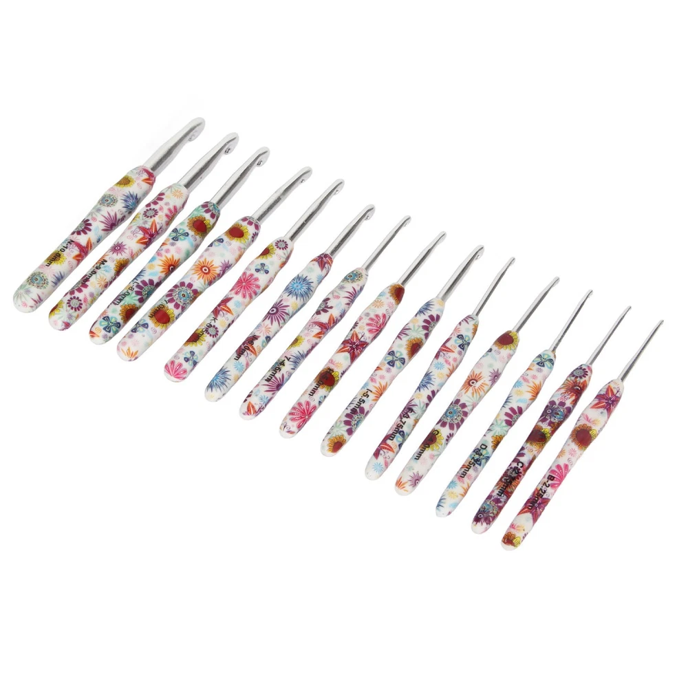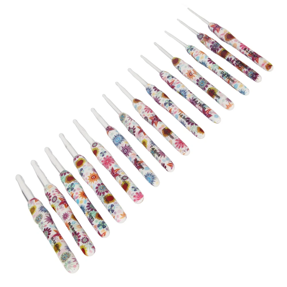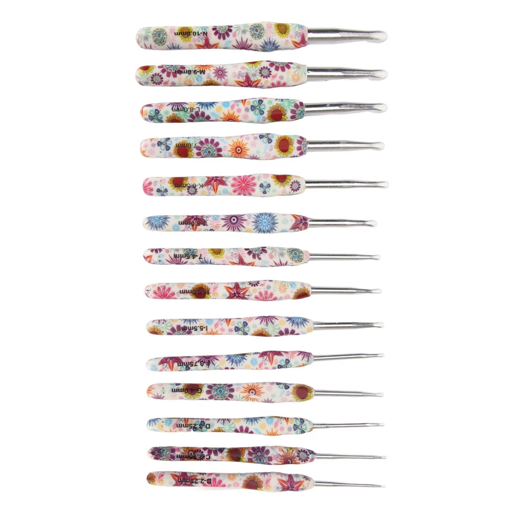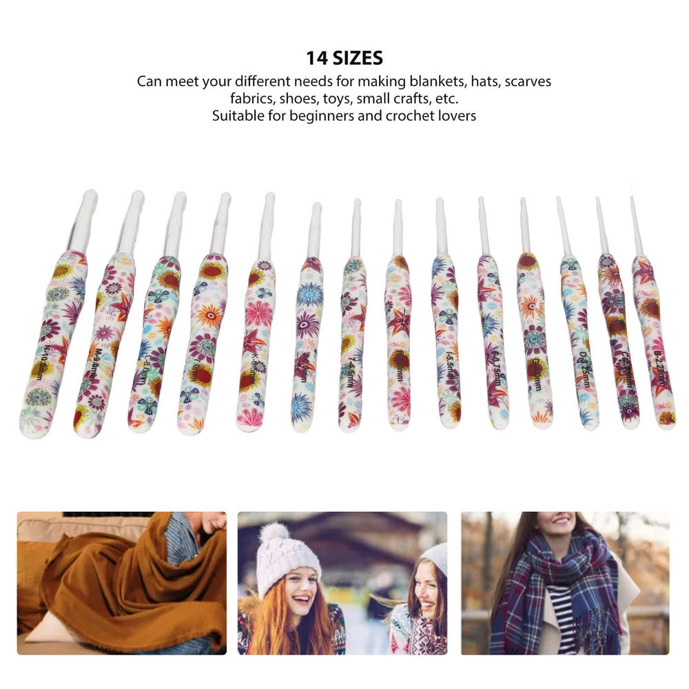 Feature: 1. ERGONOMIC DESIGN: Crochet hooks are ergonomically designed with comfortable handles that are easy to grip and reduce or eliminate hand wrist or finger pain, perfect for arthritic hands. 2. 14 SIZES: Crochet hooks are available in a variety of sizes to meet your different needs for making blankets, hats, scarves, fabrics, shoes, toys, small crafts and more. 3. SUNFLOWER PRINTING: Knitting needle with sunflower printing appearance, beautiful and exquisite, each needle has a number on the shank for easy identification. 4. EASY KNITTING: Crochet hooks are made of aluminum and are smoothly to the touch, so you don't have to worry about yarn getting stuck, making it easy to knit. 5. PERFECT GIFT: For beginners and crochet lovers, crochet gift is the perfect gift that can easily fit into your backpack, suitcase, suitcase. Specification: Item Type: Crochet Hooks Set Material: Aluminum Product Specification: 14pcs Model: Approx. 2.25mm / 0.09in, 2.75mm / 0.11in, 3.25mm / 0.13in, 3.75mm / 0.15in, 4mm / 0.16in, 4.5mm / 0.18in, 5mm / 0.2in, 5.5mm / 0.22in, 6mm / 0.24in, 6.5 mm / 0.26in, 7mm / 0.28in, 8mm / 0.31in, 9mm / 0.35in, 10mm / 0.39in Product Use: Suitable for Weaving Anywhere. Package List: 14 x Crochet Hooks