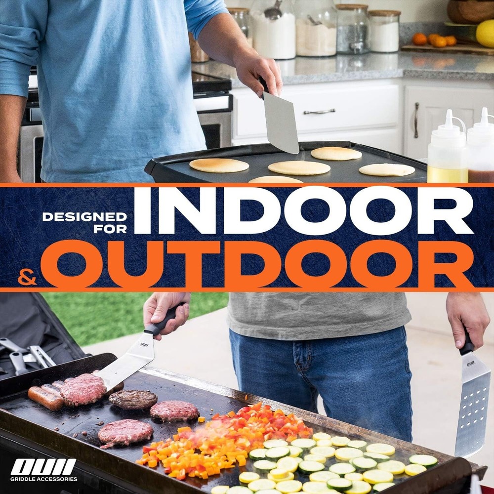 14-Piece Griddle Accessories Set for Blackstone & Camp Chef with Carry Bag ‹ › ‹ › ‹ › ‹ › ‹ › ‹ › ‹ › ‹ › ‹ › ‹ › 14-Piece Griddle Accessories Set Perfect for Blackstone & Camp Chef with Carry Bag Indulge in Culinary Excellence Elevate your outdoor cooking experience with our Griddle Accessories Set that promises to enhance your cookout adventures. This meticulously curated kit contains everything you need to unleash creativity and enjoy delicious, perfectly cooked meals under the sun. Included in Your Set: 3 Purpose-Made Spatulas: 1x Long Spatula (14.5''), 1x Slotted Spatula (14.5''), 1x Beveled Spatula (11.7'') 1 Pair of 12'' Locking Tongs for efficient and secure handling of your culinary creations. 1x Chopper (6'') for swift slicing and dicing on your griddle grill. 1x Burger flipper designed for effortlessly flipping juicy burgers. 4x Silicone Egg Rings that are non-stick and withstand temperatures up to 446F. 2x 16oz Squeeze Bottles made from Commercial Food Grade pliable plastic for accurate pouring. 1x Heavy Duty Griddle Cleaner Scourer and 1x Griddle Scraper with comfy heat-resistant handle. Why Choose Our 14-Piece Griddle Accessories Set? Versatile Cooking: From perfect pancakes to crispy hash browns, this ensemble empowers your griddle skills. Effortless Cleaning: Every tool is dishwasher safe, making post-cook tidying seamless. Compact Storage: Stow it all away effortlessly in the spacious 18x9” Griddle Accessories Case with a double carry handle. Durability Meets Functionality: Crafted from high-quality materials, each item ensures maximum performance and longevity. Heat-Resistant Comfort: Designed with heat-resistant handles for safe handling, making preparation enjoyable and safe. Start Your Culinary Journey! Don’t let lackluster kitchen tools hold you back! Embrace the art of outdoor cooking with the Flat Griddle Accessories Set. Because every delicious meal begins with the right tools. Get started on your journey to grilling greatness today! Shipping Free & Fast Shipping - We offer free shipping to most of the USA with a normal delivery time of 3-7 days. However, due to the current situation, additional delivery time (up to 3 weeks) may be required for some items. Alternative Carriers - We may use alternative carriers (e.g. USPS, FedEx, UPS, etc.) to ensure your package arrives safely and on time. Due to the use of multiple carriers, we are unable to provide a tracking number automatically. Handling Time - Orders are processed and shipped within 1-2 business days of receiving cleared payment. Shipping Restrictions - Shipping to Alaska, Hawaii, Puerto Rico, Guam, and other US territories may incur shipping charges or delivery restrictions. Please contact us before ordering, or your order can be refunded/cancelled. State Restrictions - There may be restrictions based on your state of purchase. For example, certain items may not be shipped to California due to state regulations. Contact for Tracking Updates - If you require tracking updates or have any concerns about the delivery of your order, please feel free to contact us, and we will be happy to assist you. Return 30-Day Hassle-Free Returns - We want you to be completely satisfied with your purchase. If you are not, you can return the item within 30 days of receiving it for a full refund or exchange. Easy Return Process - To start a return, simply contact us and we will provide you with a prepaid return shipping label and detailed instructions. Restocking Fee - There are no restocking fees for returns. However, the buyer is responsible for return shipping costs if the return is not due to a seller's error. Refund Processing Time - Refunds will be processed within 5 business days of receiving the returned item in its condition. Payment We accept all major credit cards, PayPal, and Apple Pay for your convenience. Your payment information is secure and encrypted to ensure a safe and seamless transaction. Please complete your payment within 3 days of purchase to avoid any delays in shipping. Feedback Your feedback is extremely important to us. We strive to provide the best products and customer service possible. If you are satisfied with your purchase, please take a moment to leave us a positive review. If you have any concerns or issues with your order, please contact us before leaving negative feedback. We are committed to resolving any problems and ensuring your satisfaction. Contact Us If you have any questions or concerns, please feel free to out to our customer support team. You can contact us through the eBay messaging system. We are available Monday to Friday, 9:00 am to 5:00 pm EST, and we will do our best to respond to your inquiry within 24 hours. Buy it now and enjoy a pleasant shopping experience! Unit Quantity: 14 Set Includes: Griddle Set,Long Spatula (14.5"),Slotted Spatula (14.5"),Beveled Spatula (11.7"),Chopper (6"),Griddle Scraper (9.5"),Burger Flipper (10.8"),Pair of 12" Locking Tongs,4x Silicone Egg Rings,2x Squeeze Bottles (16oz),Carry Bag Features: Dishwasher Safe,Non-Stick,Rust Resistant,Heat-Resistant Handles,Heavy Duty Griddle Cleaner,Efficient Cleaning Tools Type: BBQ Tool Set Color: Multicolor Number in Pack: 14 Handle Material: Polypropylene (PP) Size: Medium Head Material: Stainless Steel Finish: Polished Item Weight: Not Specified Item Height: 6 Inches Number of Items in Set: Fourteen-Piece Style: Modern Unit Type: Unit