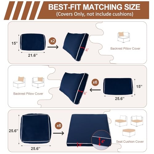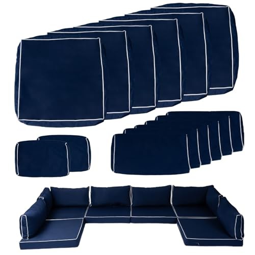Style: Modern Shape: Square Manufacturer: Does Not Apply Item model number: outdoor cushion covers Product Care Instructions: Hand Wash Only gtin13: Does Not Apply Brand: Does Not Apply Pattern: Solid UPC: Does Not Apply Closure Type: Zipper, Ties Item Width: 1 Date First Available: February 29, 2024 Type: Does Not Apply MPN: Does Not Apply Fabric Type: Polyester Item Height: 1 Country of Origin: China Recommended Uses For Product: Garden, Balcony, Backyard, Lawn, Outdoor, Deck, Indoor, Patio Water Resistance Level: Water Repellent Item Length: 1 Product Dimensions: 25.6"D x 25.6"W x 4"H EAN: Does Not Apply Size: 25.6"L x 25.6"W x 4"H -14 covers Material: Polyester Furniture Cover Type: Sectional Sofa Cover Customer Reviews: 4.2 out of 5 stars Unit Count: 1.0 Count Item Weight: 6 Pounds Number of Items: 14 Color: Navy Blue+white Piping Special Feature: Anti-fading