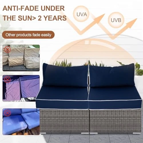 Return Policy Fast Delivery Trusted seller 14 Piece Outdoor Patio Cushion Covers Replacement, Waterproof Outdoor Furniture Cushion Covers, Fit 7 Pcs 6 Seater Wicker Rattan Patio Conversation Sofa Set, Navy Blue+White Piping(Only Cover) Product Description Note: This set only includes the cushion cover and pillowcase, not the cushion and pillow core. Please carefully measure the size of your outdoor patio furniture sofa size and the size of our replacement cushion covers before purchg. Due to different monitors, the color of the picture and the actual cushion cover will be slightly different What You Get: These outdoor patio cushion covers include a total of 14 pieces, 6 piece seat cushion covers (25.6Lx25.6Wx4H inches), 6 piece backrest pillow covers (25.6Lx15Wx4H") and 2 piece small back pillow covers ( 21.6Lx15Wx4H"). Outdoor cushion cover Fits 7 piece Wicker Rattan Sectional Couch Chair Furniture Set Reliable Fabric - As you worry about, considering the changeable weather outdoors, the outdoor cushion covers is made of higher priced yarn dyed polyester fabric, which is durable and fade resistant in the sun, has high color fastness, and is full of color Vibrant, a variety of colors for you to choose from, make your outdoor furniture sofa look brand new at a low cost! Waterproof and Easy to Clean: Our outdoor cushion replacement cover is splash-proof, but it is not 100% waterproof. Water droplets or minor stains drip onto the cushion cover, which can be easily wiped clean with a towel. If it rains heavily, it is recommended to bring the outdoor cushion cover back indoors. Anti slip design & YKK zippers — Silicone anti-slip points are added to the bottom of the outdoor cushion cover to effectively prevent the seat cushion from moving. Ties on the backrest cover make it easy to secure the backrest to patio rattan furniture. These design details will take the worry out of moving. YKK quality zippers can be used thousands of times without breaking Shipping Returns Payment Shipping Shipping is FREE to all addresses other than APO/PO boxes in the lower 48 states. All our stock ships from US-based warehouses. Shipped via USPS or UPS (depending on location and package weight) Unless stated otherwise, all orders will ship within 24-72 hours of your payment being processed. Check our feedback to see the great reviews of FAST shipping we offer. Returns Seller does not accept returns Payment We currently accept payment via eBay managed payments only. Once payment is cleared, we will dispatch your shipment within 1-3 business days. Please refer to the "Shipping" tab for more information regarding shipping speed to your destination.
