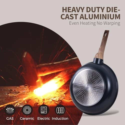 Return Policy Fast Delivery Trusted seller Pots and Pans Set with Lids, 14 PCS Cast Aluminium Non Stick Non-toxic Ceramic Coating Cookware Set, Frying pans with Lids, Black Product Description Package Includes: 1.5Qt Saucepan with Lid, 8" Frying Pan, 9.5" Frying Pan, 4.5Qt Casserole with Lid, 4.5Qt Saute Pan with Lid, 2 PCS Big Pot & Pan Protectors, 2 PCS Small Pot & Pan Protectors, 2 PCS Silicone Cooking Utensils High-Pressure Die Casting Skillet :Molten aluminum injected under high pressure, achieves uniform 3.6 mm base/1.6 mm wall thickness, with 0.1 mm deformation tolerance. Heavy-duty cast aluminum ensures even heating and is resistant to deformation during use. Non-toxic Ceramic Coating & Super Nonstick: Made of natural ceramic coating, which is free from PTFE/PFAS/PFOA, ensure healthy and safe cooking. Most food residues removed under warm running water. Less water and time wasted. Eggs can slide right off the pan effortless, which makes cooking easier with less oil. Induction Compatible: Its induction base is applicable for all stove tops, including induction. Its enlarging magnetic base ensures larger heating area. Optimal Heat Guidance: For smaller cookware (like 8" skillets), the burner flame diameter may exceed the pan's base. To ensure the best performance and longevity of the handle, we recommend using low to medium heat as your primary setting. This helps prevent direct flame exposure to the handle base, promotes even cooking, and provides greater control for a safer and more enjoyable culinary experience. Shipping Returns Payment Shipping Shipping is FREE to all addresses other than APO/PO boxes in the lower 48 states. All our stock ships from US-based warehouses. Shipped via USPS or UPS (depending on location and package weight) Unless stated otherwise, all orders will ship within 24-72 hours of your payment being processed. Check our feedback to see the great reviews of FAST shipping we offer. Returns Seller does not accept returns Payment We currently accept payment via eBay managed payments only. Once payment is cleared, we will dispatch your shipment within 1-3 business days. Please refer to the "Shipping" tab for more information regarding shipping speed to your destination.