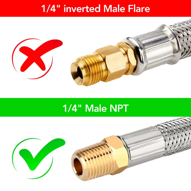 1/4in NPT RV Propane Hose Pigtail 15in Connector 2 Pack - Gauge and Tape