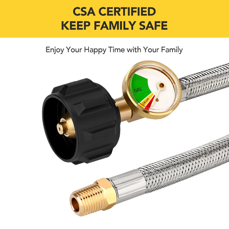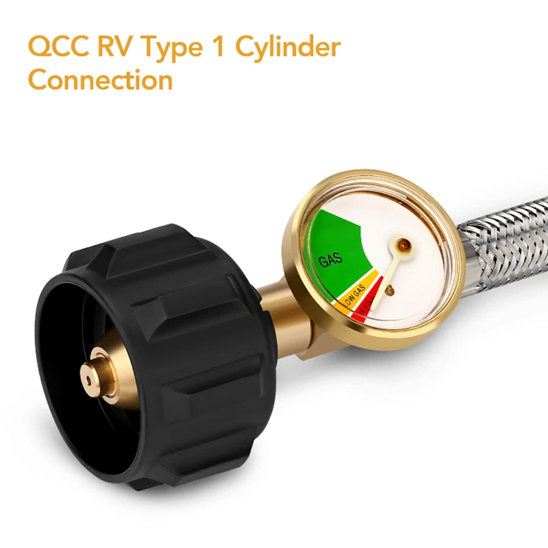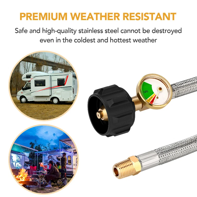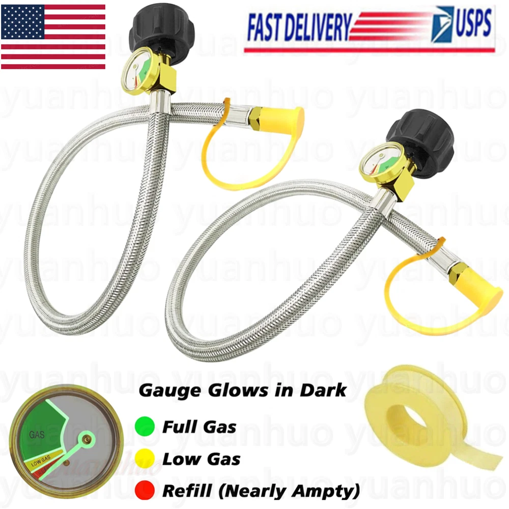 eBay Product Description 2Pcs 15 In Male 1/4" NPT QCC1 RV LP Propane Pigtail Hoses with Gauge Connector Product Description High Quality: Stainless braided hose is made of durable stainless steel braided with good anti corrosion and heat-resistance. Durable solid brass provide secured connections between appliance and tank. Safety: Our 15 inch stainless braided RV propane hoses with gauge can detect dangerous leaks and read fuel level at glance. It can work in dark. No need to install an extra gas gauge. Attention: It's a ACME nut x 1/4 inch inverted male flare.(NOT 1/4'' Male NPT). It can not only connect your 2-stage auto changeover regulator to a QCC1 5lb to 40lb LP gas tank, but also can be used to connect to an installed 4-Port Tee as an auxiliary propane supply. Application: This braided propane hose is suitable for BBQ, RV, outdoor cooking and camping needs. Easy to Install: Installs quickly and easily tool-less attachment to propane tanks and regulator. Length: 15inch hoses Material: stainless steel Connecting thread: Type 1 connection and a 1/4'' inverted Male Flare. Package include: 2 packs stainless braided propane hoses with Gauge. 1 Thread Seal Tape. Gas Type: Propane Payment Shipping Returns Contact Us Feedback We accept payment through Paypal ONLY. All major credit cards are accepted through secure payment processor PayPal. Payment must be received within 7 business days of auction closing. 1. We will ship in 1-2 business days after payment clears. 2. Additional shipping fee will be charged for buyers from Puerto Rico,Hawaii,Alaska,Guam,the U.S. military address of the United States and the nonnative American address please contact our customer service for the details of extra shipping fee. 3. We don't ship to PO.BOX if the package are big, as USPS express don't accept it, so please leave us your valid physical street address. We're confident in the product we sell. But sometimes the item will be damaged during the transit as which rough and tough and out of our control. If your item is defective or damaged when you received it, Pls kindly let us know asap. Take a photos of the damaged items to us,once we confirmed it,we will give you satisfied solution. We can resend or refund once we confirmed. Defective or damaged Shipping charges is for seller. Change mine or dislike Shipping charges is for buyer. Our office hours are MONDAY - FRIDAY 9:00PM - 6:00PM PST. All eBay messages will be responed within 24 housrs, except holidays. We appreciate your business and strived to improve our customer service and our commitment to quality. We greatly appreciate your POSITIVE feedback. If for some reason there is any issue with the purchase, please contact us prior to leaving feedback, and we will be glad to work with you to have it resolved. Payment We accept payment through Paypal ONLY. All major credit cards are accepted through secure payment processor PayPal. Payment must be received within 7 business days of auction closing. Shipping 1. We will ship in 1-2 business days after payment clears. 2. Additional shipping fee will be charged for buyers from Puerto Rico,Hawaii,Alaska,Guam,the U.S. military address of the United States and the nonnative American address please contact our customer service for the details of extra shipping fee. 3. We don't ship to PO.BOX if the package are big, as USPS express don't accept it, so please leave us your valid physical street address. Returns We're confident in the product we sell. But sometimes the item will be damaged during the transit as which rough and tough and out of our control. If your item is defective or damaged when you received it, Pls kindly let us know asap. Take a photos of the damaged items to us,once we confirmed it,we will give you satisfied solution. We can resend or refund once we confirmed. Defective or damaged Shipping charges is for seller. Change mine or dislike Shipping charges is for buyer.