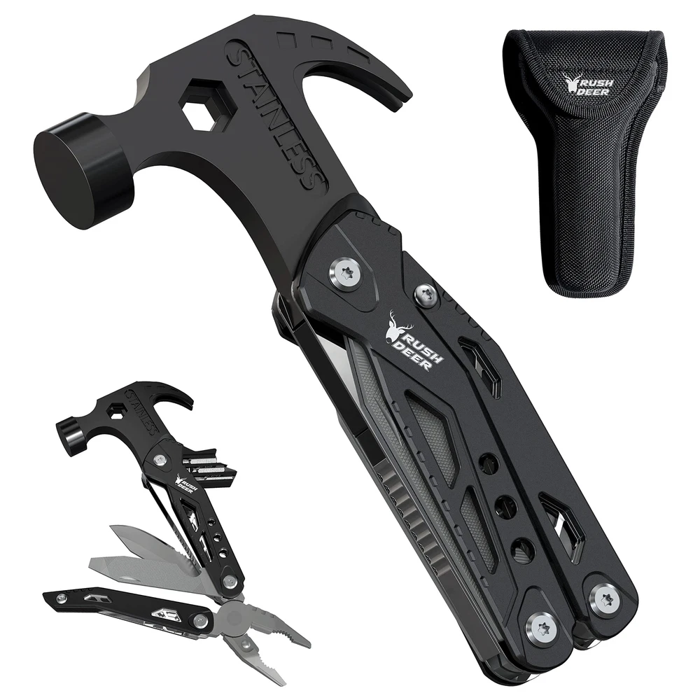【14-in-1 Multi tool】:The 14 in 1 mini hammer multitool includes heavy duty mini claw hammer, allen wrench, needle nose pliers, phillips screwdriver, wire cutter, serrated knife, screwdriver hole, slotted screwdriver, nail puller, steel file, bottle opener, knife, regular pliers, slotted screwdriver. 【Upgraded Survival Gear and Supplies】: The hammer multi tool survival gear tool kit with a seatbelt cutter and min hammer, is a utility tool for keeping in the car to deal with any emergencies. Strong enough to shatter the glass curtain wall, cut the rope curtain in a dangerous escape. A necessity for every family. 【Camping Essential Accessories 】: This multitools camping gear kit fits camping, home daily-use, hiking, exploring, adventure, fishing, work, hunting etc. Comes with a waist clip bag, the multitool is made of stainless steel, durable and rust-resistant. It can be folded into a handle shape, easy to grip, and is an ideal tool for everyday carry. 【Christmas Gifts for Men and Women Who Have Everything】: Have you ever seen more versatile and unusual gift ideas? This is a gift for dads who have everything, suitable for men, husbands, sons, and boyfriends for birthdays, Christmas, Father's Day, anniversaries, or Valentine's Day. 【Satisfactory Service】: Quality and Customer Satisfaction are our top priorities. If the camping accessories hammer multi tool doesn’t live up your expectations, please feel free to contact us and we will do our best to ensure your happy purchase experience.