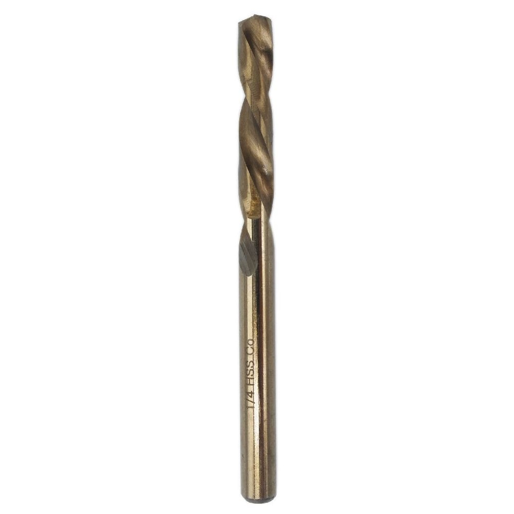 cobalt M35 left hand drill bits are made from high-speed steel and 5% cobalt. The addition of cobalt improves strong durable performance in harder materials. Made in China. You Will Get: 3 pieces of 1/4-inch x 3-5/16-inch cobalt left hand drill bits with case. Warning: Drill bits can shatter during use. Always wear safety goggles and safety items when drilling. DIMENSION: 1/4-inch cutting diameter, 1-3/4-inch flute length, 3-5/16-inch overall length, 135 degree split point, straight shank MADE FROM HIGH-SPEED STEEL AND 5% COBALT: improve much higher heat resistance because of cobalt steel's high red hardness, provide strong durable performance compared to typical hss drill bits CAN BE REPEATEDLY SHARPENED AS NEEDED: cobalt drill bit's hardness is uniform throughout the entire material, so that can be repeatedly sharpened without damaging the cutting edge allowing it to drill more than hss drill bits APPLICATION: best used for removing damaged bolts and screws, or drilling a pilot hole for a screw extractor INCLUDE: 3 pieces of 1/4-inch cobalt left hand drill bits with case