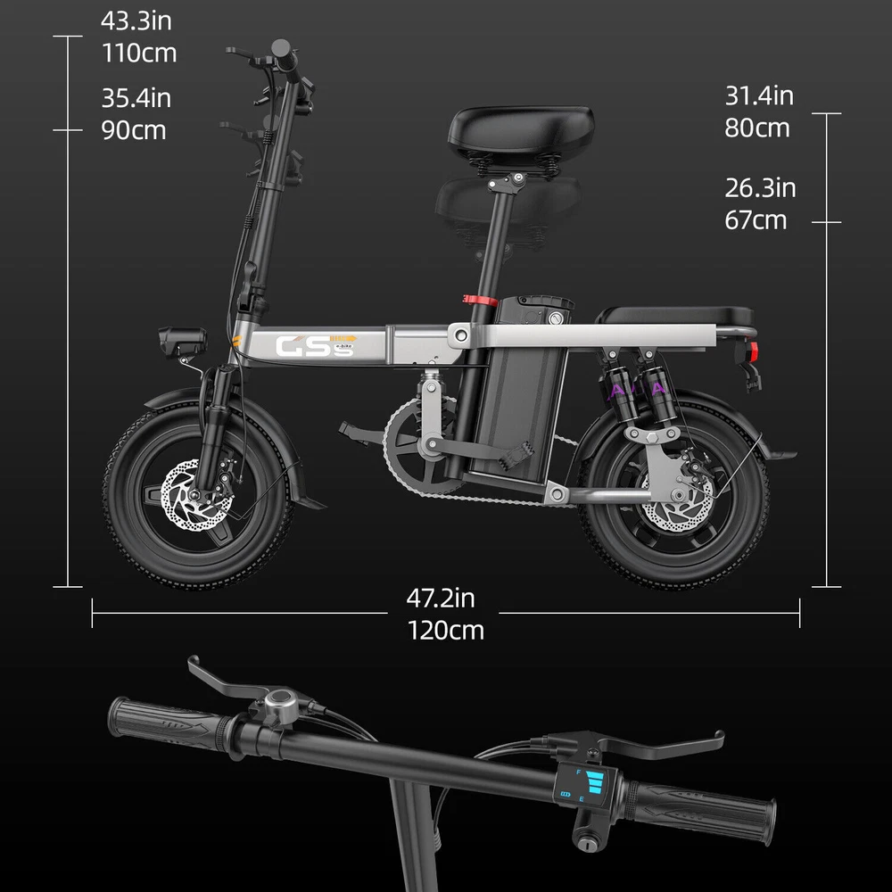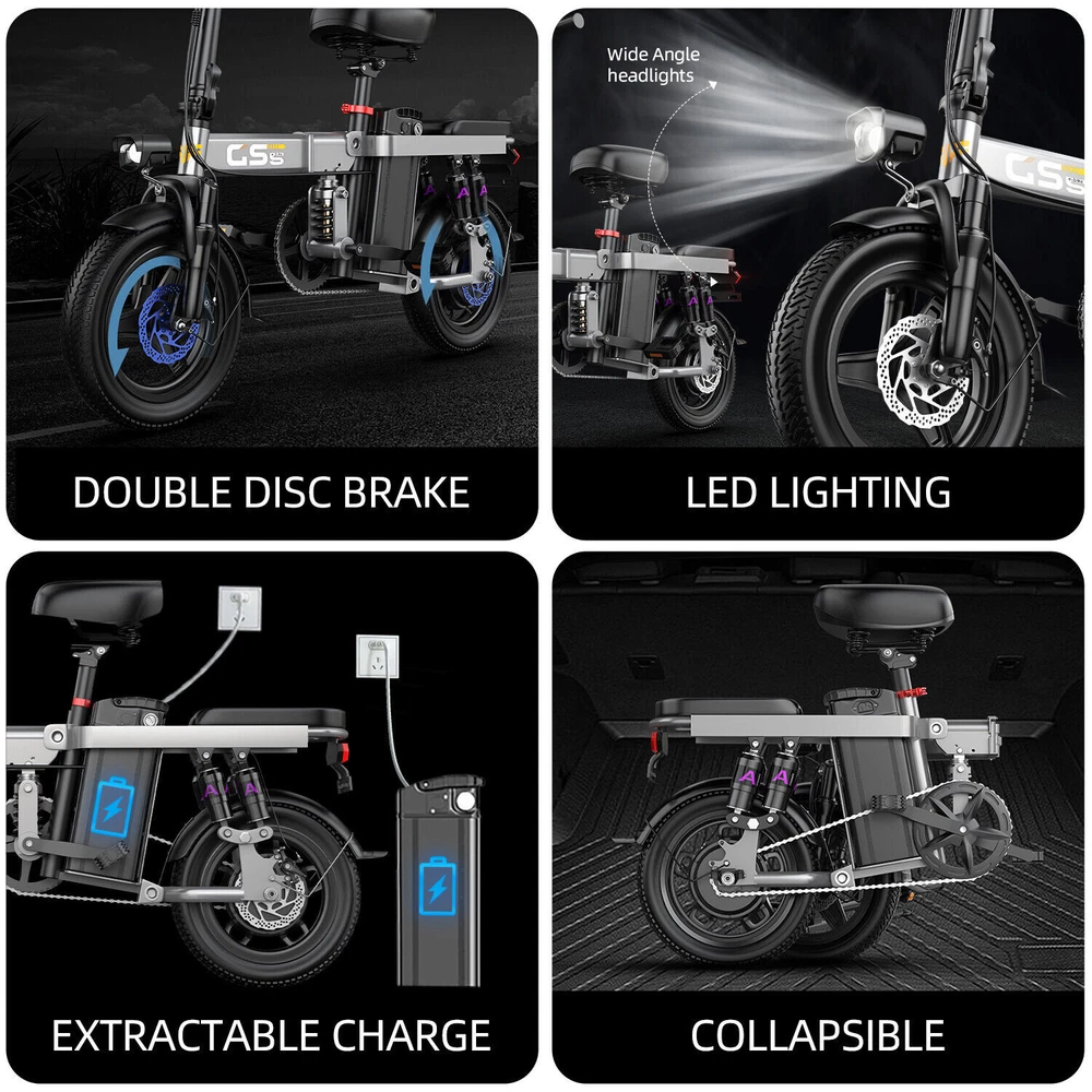 Adult Electric Bike Peak 1000W Folding E-bike 28MPH 48V 18.2Ah Bicycle Commuter