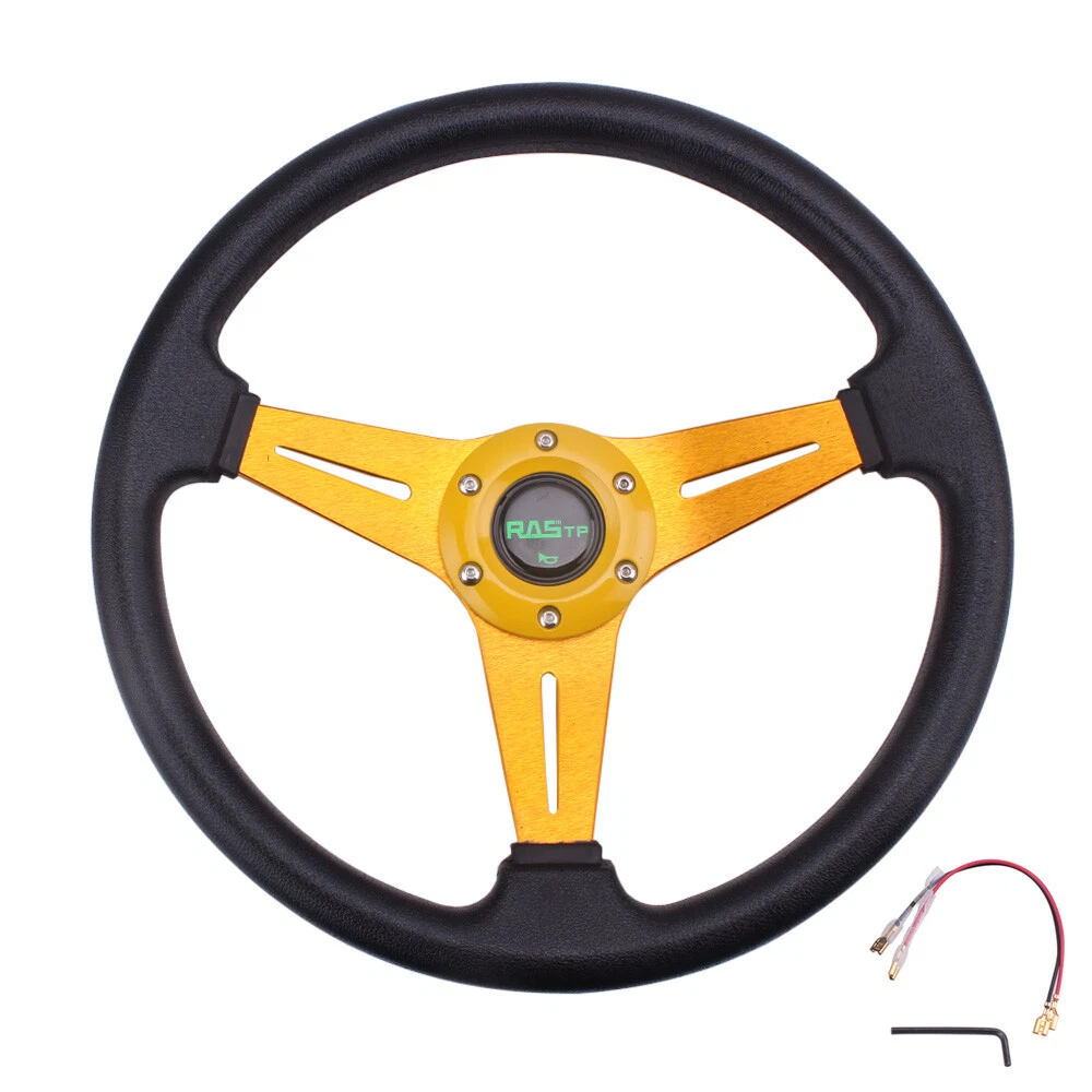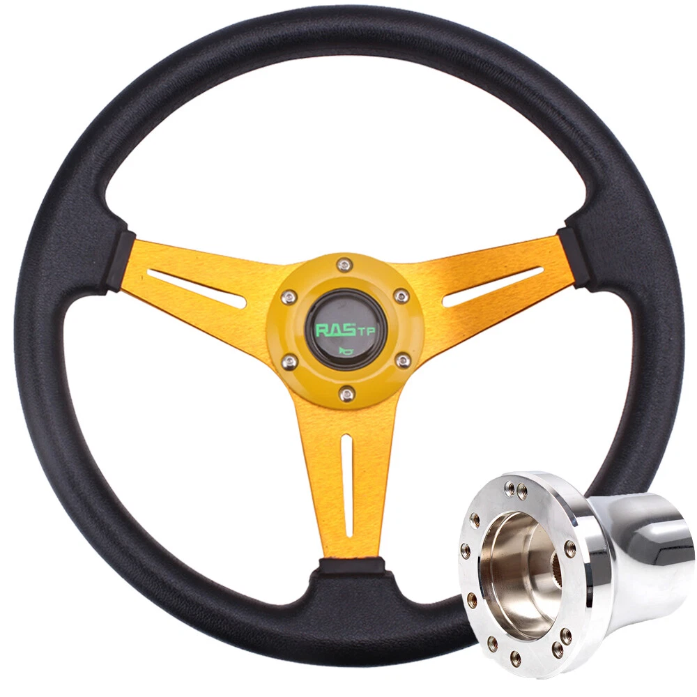 14inch Gold Golf Cart Steering Wheel Accessories+Sliver Adapter for EZGO TXT RXV About steering wheel Universal golf cart steering wheel fit most EZGO TXT RXV High Quality Material: with hard aluminum spokes and Lightweight body made of PVC, wear-resistant, corrosion-resistant; Ergonomic Design for this golf cart steering wheel provides a nice touch and feels great in your hands; Steering wheel replaced the old faded steering wheel you had, made your golf cart look like new again; Golf cart steering wheel must be installed with Adapter ; Color:Gold Material: Aluminum Size:12.9 inch/327mm About Adapter Golf Cart Steering Wheel Adapter for EZGO TXT & RXV Condition: New in Box Surface Finish: CHROME Material: Iron Special Notes: Fits most 5 or 6 hole steering wheels( Not included) Will NOT work on any other makes or models Application: Universal Fits 5/6-Hole Adapters Package Included: 1 X Steering Wheel(Gold) 1X Golf Cart Adapter(Silver) NOTE: All items are Brand New unless stated otherwise on the listing. We sell DIY (Do It Yourself) . We take no responsibility in teaching you how to install. Professional installation is strongly recommended. Payment policy Shipping policy Return Policy Product & Price description Contact us Payment policy We only accept PayPal and Payoneer payment, Please be sure your shipping address is correct. Please make sure your account balance is adequate Shipping policy 100% of orders shipped within 24-48 hours. Tracking number will be added to ebay after the shipment, u can track the item status on 17 track net. It's usually delivered within 1-5 business days, If it takes longer than this time, please contact us and we will explain the reason and deal with it. Thank you for your understanding Above time are for reference ONLY. Shipping might be delay by holidays, events and other uncertainties. Note: If there are any customs duties, local taxes or any other import charges, the buyer will bear these charges. Every country has different policies, so you need to know your country's tax policy. Return Policy Please contact us before leaving neutral or negative feedback and we will try our best to resolve any issue. Feedback will be left to every buyer who completed the transaction and left positive feedback to us. We accept 30 days return only if item is original. Refund will be issued once we receive your returned items. Buyer is responsible for all return shipping charges. Product & Price description About the product --- The product has been adjusted, you can rest assured to use. If you are not sure whether the model is suitable, please contact me by email, thank you About Price ---The price of the product is reasonable. If you want a lower price , please send a message to my email address. I will discuss with you the appropriate price Contact us For any reason you want to contact us,We aim at satisfying every visitor, no matter what kind of situation you meet with, we will be right here to serve you. Please contact our team.If you are happy with the transaction with us, leaving us an ALL-5-STAR positive feedback would be greatly appreciated. Have a good shopping.