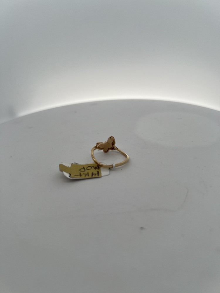 The 14k Gold Butterfly Ring is a beautiful piece of fine jewelry featuring a butterfly shape design with a mother of pearl main stone. The ring is crafted with yellow gold and has a metal purity of 14k, making it a high-quality and luxurious addition to any jewelry collection. With a ring size of 6, this intricate and elegant piece is perfect for those who appreciate unique and eye-catching accessories. WE CANNOT CONTROL SHIPPING DELAYS - ALL SALES FINAL - NO REFUND/RETURNS.
