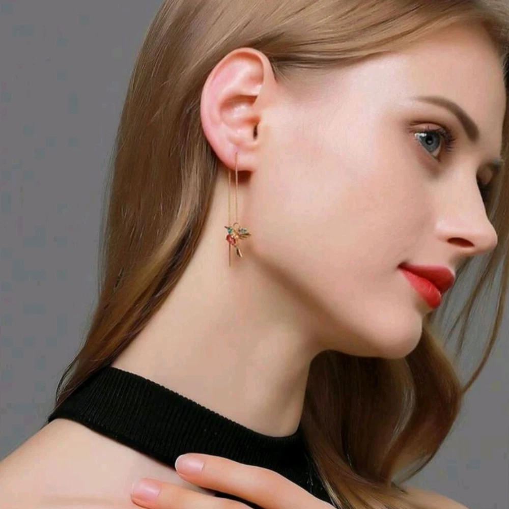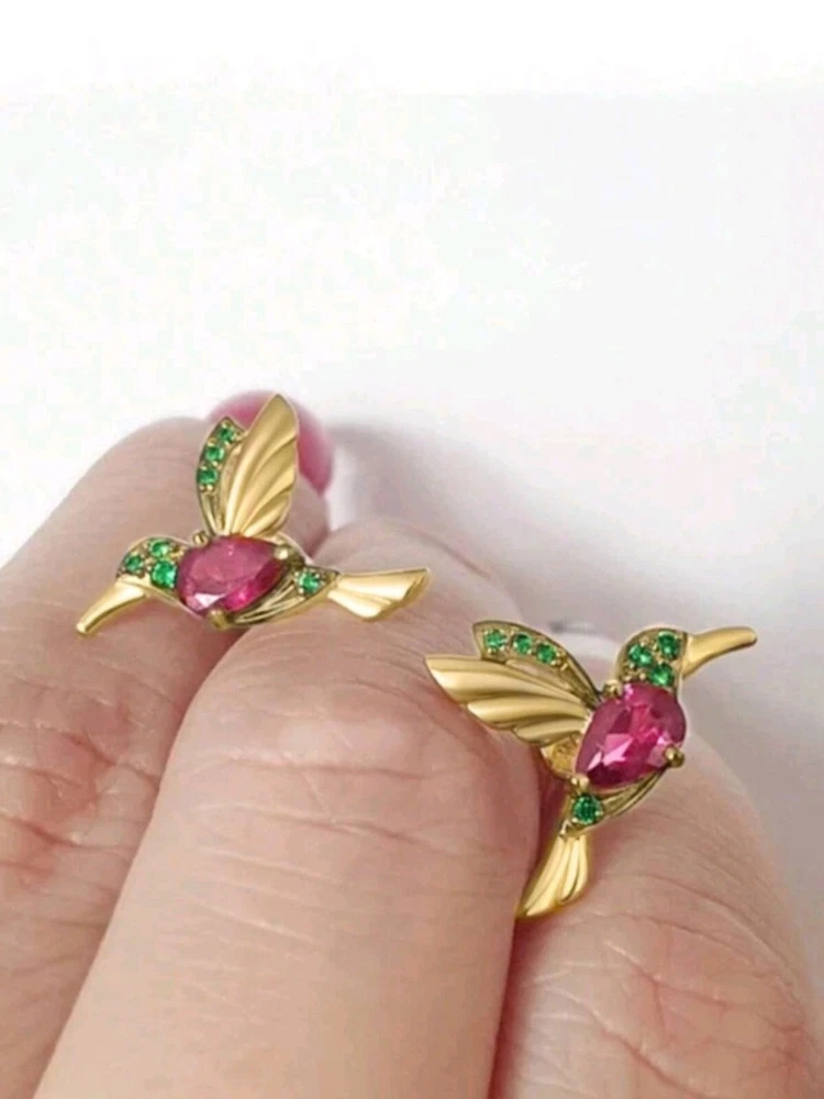 Add a touch of nature’s magic to your style with these stunning 14k Gold Plated Hummingbird Earrings! Crafted in a vibrant gold tone, these long earrings feature a delicate hummingbird with its wings spread in flight, adorned with rich red cubic zirconia and striking green stones. The intricate design captures the beauty of the hummingbird’s graceful energy, making these earrings a captivating statement piece. Perfect for women who love unique, nature-inspired jewelry, these earrings will bring elegance and a splash of color to any look. Embrace the beauty of flight—wear them and let your style soar!