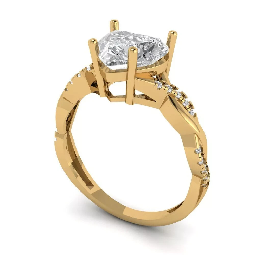 Elegance meets sparkle in this 14k Yellow Gold Plated Engagement Women's Ring, showcasing a 2.00Ct Heart Cut Lab Created Diamond. Crafted with precision, the ring features a stunning heart-shaped main stone of laboratory origins, boasting VVS1 clarity and an excellent cut grade. Encircled by additional lab-created diamonds, the piece shines with a total carat weight of 2.50CT, offering a balance of glamour and grace. The ring's solitaire style is complemented by a prong setting, ensuring the security and durability of the precious stones. With the option for personalization, this ring can be tailored to fit all sizes, making it a versatile choice for that special someone. Whether for an anniversary, birthday, or other celebratory occasion, this ring is a timeless symbol of love and commitment.
