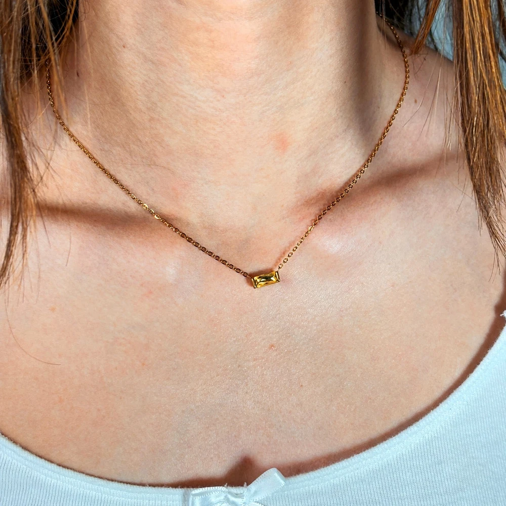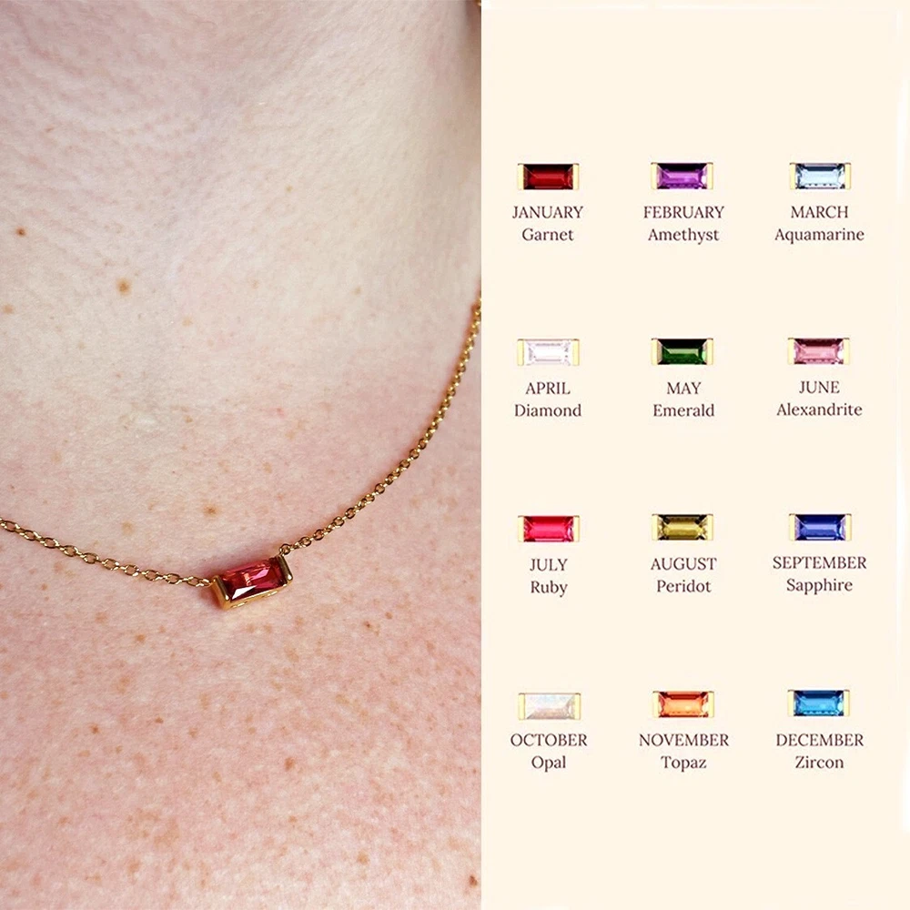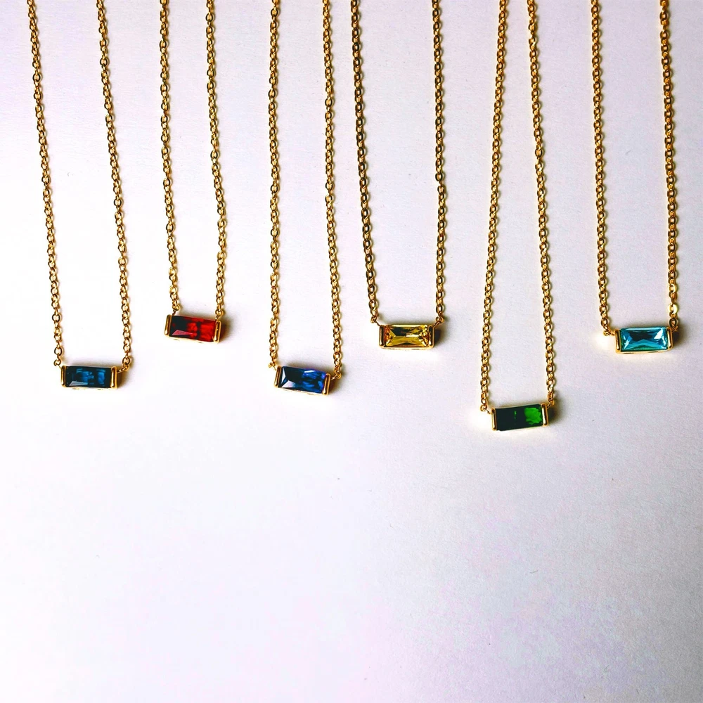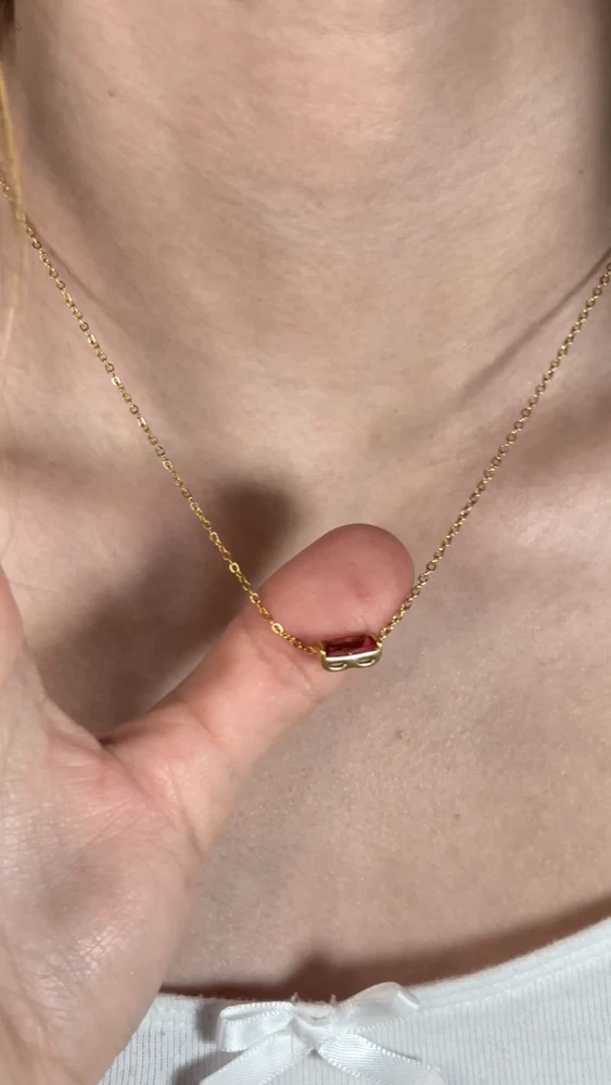 Elegant 14k Gold Ruby Necklace featuring a rectangle-cut gemstone. FAST & FREE SHIPPING! Features: ✨ Gemstone: Genuine rectangle-cut Ruby Crystal (~6x4mm), symbolizing love, passion, and strength. ✨ Material: 14k gold-plated chain and setting for a radiant, durable shine. ✨ Chain Length: Adjustable from 16 to 18 inches for a perfect fit. ✨ Design: Minimalist and lightweight, perfect for everyday wear or elevating any outfit. Available Gemstones While this listing highlights Ruby, explore other gorgeous birthstones to suit your needs: January: Garnet (Love & Vitality) February: Amethyst (Peace & Intuition) March: Aquamarine (Tranquility & Courage) April: Clear Crystal (Clarity & Strength) May: Emerald (Abundance & Growth) June: Alexandrite (Balance & Joy) August: Peridot (Prosperity & Healing) September: Sapphire (Wisdom & Royalty) October: Pink Tourmaline (Compassion & Healing) November: Yellow Topaz (Confidence & Energy) December: Blue Zircon (Hope & Purity) Perfect for Gifting: This birthstone jewelry makes an ideal gift for any occasion: Mother’s Day: A heartfelt gift for mom. Birthdays: Celebrate with a meaningful gemstone. Valentines or Holidays: A dainty yet thoughtful present. Anniversaries: Symbolize love with this elegant keepsake. Why You’ll Love It: Versatile Style: Pair it with formal or casual outfits for everyday elegance. Lightweight & Comfortable: Designed for all-day wear without compromising on style. Care Instructions: To maintain its brilliance: Avoid prolonged exposure to water, perfumes, or harsh chemicals. Store in a dry, soft pouch or jewelry box when not in use. Please Note: Each necklace is crafted with care, and gemstone hues may vary slightly due to their natural origin, making your piece truly unique. Disclaimer: Gemstone properties are based on traditional beliefs and are not a substitute for medical advice. For personalized medical guidance, consult a professional. Add a touch of passion and meaning to your jewelry collection or gift someone special with this 14k Gold Ruby Necklace. Its timeless design and symbolic charm make it the perfect July Birthstone Gift for any occasion. Order now and enjoy FAST & FREE SHIPPING!