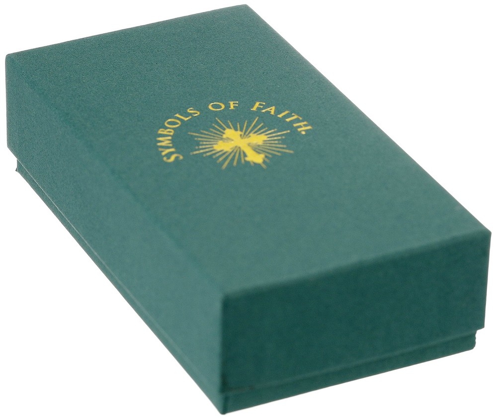 Our Lady of Guadalupe is also called "Empress of the Americas." The artwork features the manifestation of Mary in a traditional star embroidered blue gown. Her hands are clasped in prayer and beneath her feet rests an infant; representing Senora Nuestra de Guadalupe as the protector of the innocents. Comes packaged in a gift box. Comes in a gift box. Our Lady of Guadalupe, or "Empress of the Americas" 14K gold-dipped necklace. Artwork features the manifestation of Mary in her role as protector of innocents. Made in United States