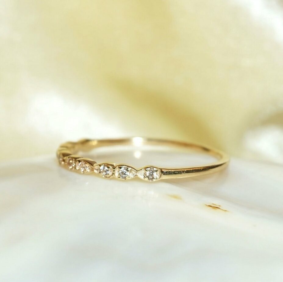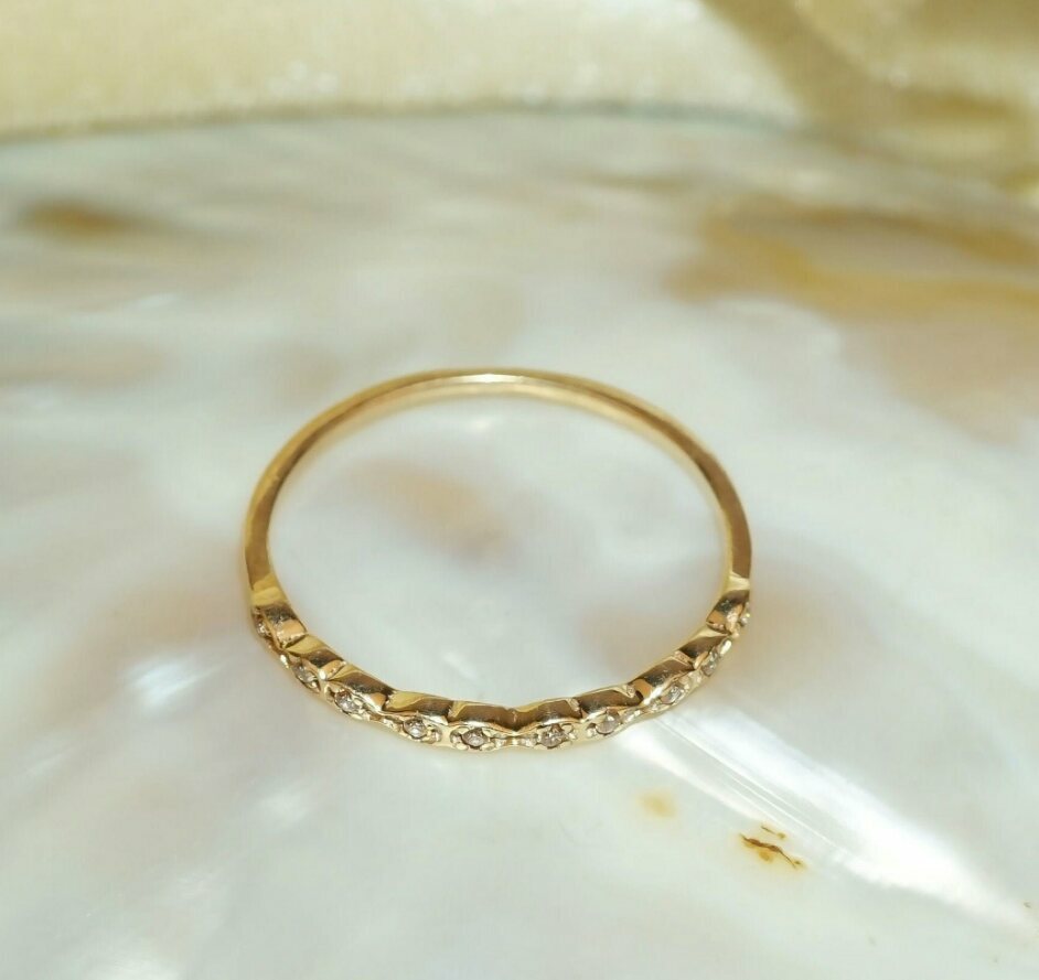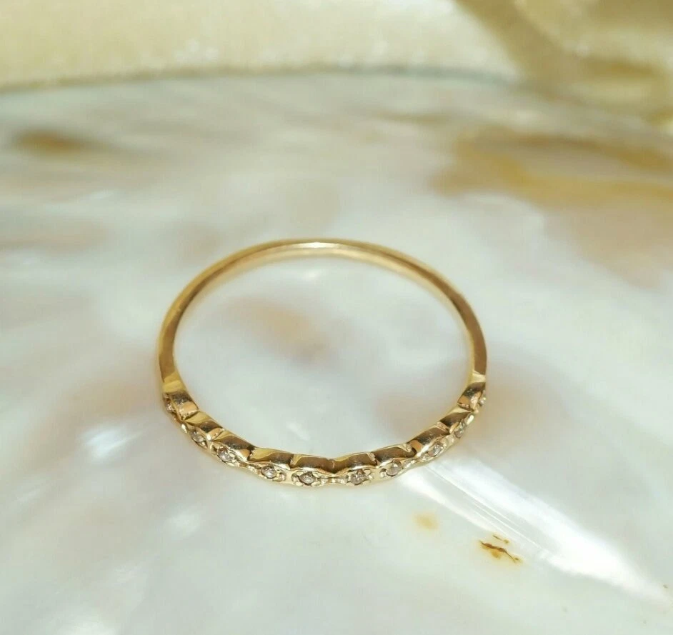 $ 491.34Curved Tiara Diamond Wedding Band 14k Gold Dainty Curved Tiara Ring Wedding Gift