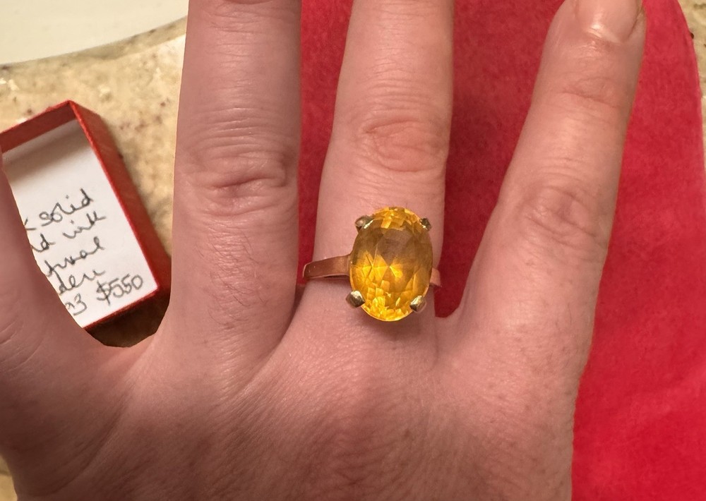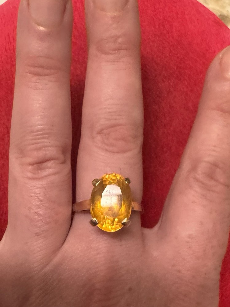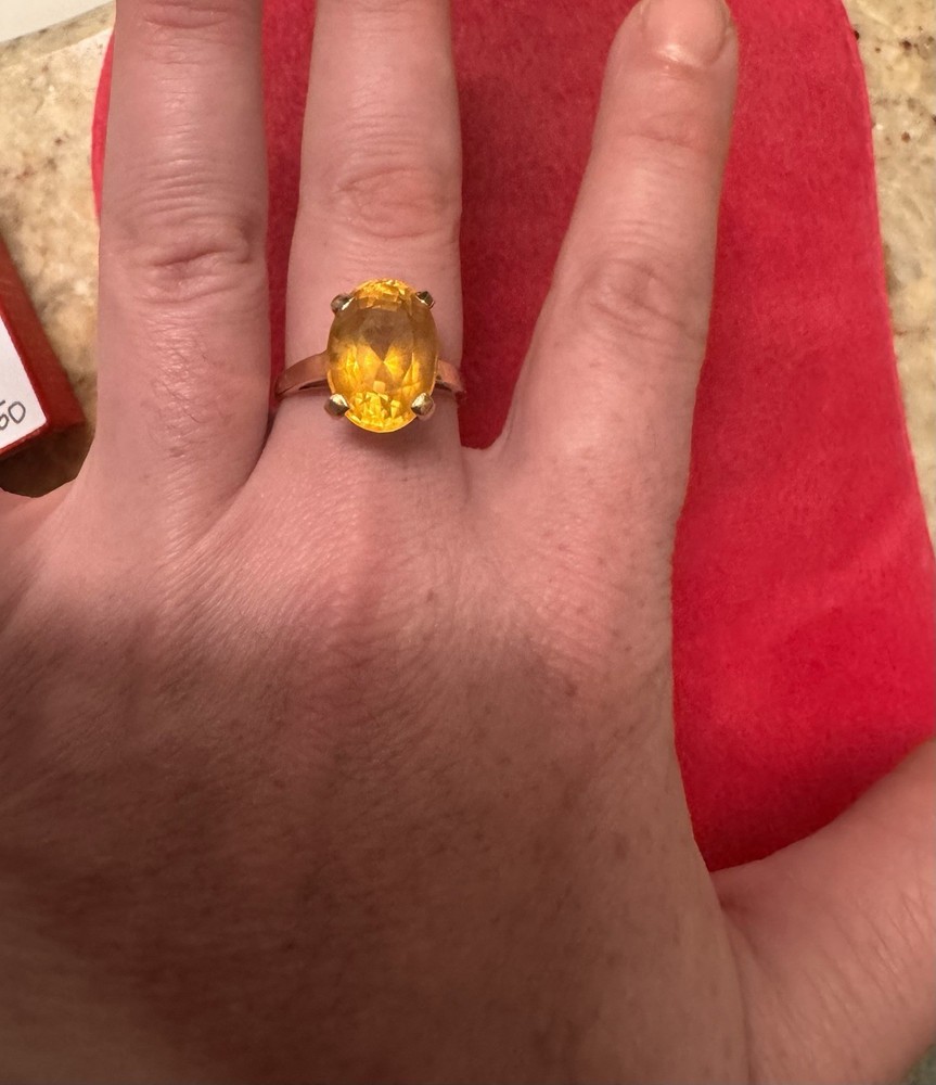 Main Stone Creation:NaturalColor:YellowShape:OvalMetal:Yellow GoldType:RingBrand:UnbrandedSetting Style:ProngMain Stone Color:YellowRing Size:9Main Stone:TopazMain Stone Shape:OvalMaterial:Gold, TopazMetal Purity:14k