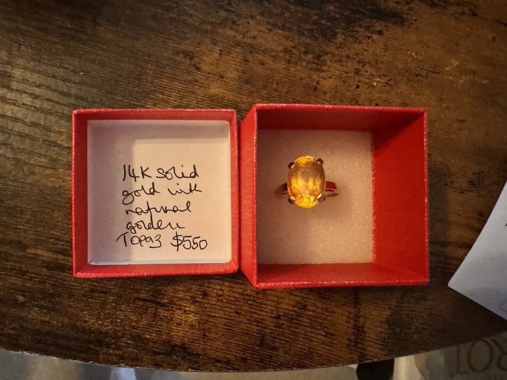 Home14k Solid Gold Ring with Natural Oval golden Topaz Size 9 Prong Setting