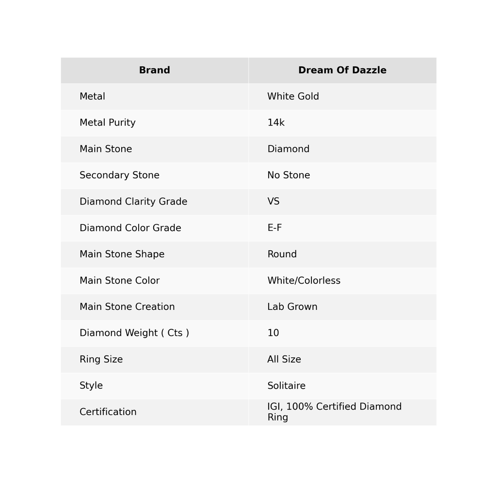eBay Listing Template Home Shop Deals Feedback Home Shop Deals Feedback ❮ ❯ Free Next Day Delivery 30 Days Return Policy Online & Phone Support 100% Buyer Satisfaction Brand Dream Of Dazzle Metal White Gold Metal Purity 14k Main Stone Diamond Secondary Stone No Stone Diamond Clarity Grade VS Diamond Color Grade E-F Main Stone Shape Round Main Stone Color White/Colorless Main Stone Creation Lab Grown Diamond Weight ( Cts ) 10 Ring Size All Size Style Solitaire Certification IGI, 100% Certified Diamond Ring This product is a stunning white gold ring featuring a 10.0 carat lab-grown diamond in a round shape. The solitaire style ring is perfect for special occasions such as engagements, weddings, anniversaries, or birthdays. The handcrafted, nickel-free ring is signed and certified by IGI, making it a high-quality and beautiful piece of fine jewelry. Made in India, the ring is designed with a prong setting and a light-colored diamond, exuding beauty and elegance. About Us Shipping Payment Return About Our Shop With over 10 years of experience, we are a trusted premium retailer known for our strong commitment to quality and exceptional customer service. Our dedication has consistently earned us a reputation for excellence among our customers. We work closely with manufacturers to ensure the authenticity of every product we offer, allowing us to provide our customers with genuine items at unbeatable prices. Since our start, we have grown into a trusted online jewelry retailer, offering a beautiful selection of quality pieces designed to celebrate your unique style and special moments. Our experienced and passionate team handpicks every item to ensure top-tier quality. We are committed to building lasting relationships with our customers through outstanding service and premium products. With thousands of satisfied customers around the world, we proudly maintain a positive feedback rating. Shipping Information We’re pleased to offer free shipping on all orders—both domestic and international—through trusted and reliable courier services. We partner with leading carriers such as FedEx, UPS, and DHL to ensure your order arrives safely and on time. Once your package is shipped, you’ll receive an email with complete tracking information. Every order qualifies for free standard shipping. If you need your items sooner, expedited shipping options are available at checkout for an additional fee. For international customers: Please note that import duties, taxes, and customs fees are not included in the item price and are the buyer’s responsibility. We recommend checking with your local customs office before placing an order. All items are securely packaged to prevent damage during shipping. We use durable materials and protective cushioning to ensure your products arrive in perfect condition. Payment Methods We accept payments exclusively through eBay’s Global Payment System, ensuring a secure and seamless transaction experience for all buyers. Orders will be processed and shipped only after payment confirmation from eBay. Using this system protects your payment information through eBay’s secure platform. If you have any questions about payment options or need assistance, please don’t hesitate to contact our customer support team. Return Policy We offer a 30-day return period on all products to ensure your complete satisfaction. To be eligible for a return, items must be unused, in their original condition, and returned in the original packaging. Our return process is straightforward and customer-friendly. If you’re not fully satisfied with your purchase, simply contact our support team within 30 days of delivery to start the return. Once we receive the returned item, we will inspect it and inform you about the refund status. Approved returns will be refunded to your original payment method. If your product arrives damaged or defective. Please notify us in such cases. About Us About Our Shop With over 10 years of experience, we are a trusted premium retailer known for our strong commitment to quality and exceptional customer service. Our dedication has consistently earned us a reputation for excellence among our customers. We work closely with manufacturers to ensure the authenticity of every product we offer, allowing us to provide our customers with genuine items at unbeatable prices. Since our start, we have grown into a trusted online jewelry retailer, offering a beautiful selection of quality pieces designed to celebrate your unique style and special moments. Our experienced and passionate team handpicks every item to ensure top-tier quality. We are committed to building lasting relationships with our customers through outstanding service and premium products. With thousands of satisfied customers around the world, we proudly maintain a positive feedback rating. Shipping Shipping Information We’re pleased to offer free shipping on all orders—both domestic and international—through trusted and reliable courier services. We partner with leading carriers such as FedEx, UPS, and DHL to ensure your order arrives safely and on time. Once your package is shipped, you’ll receive an email with complete tracking information. Every order qualifies for free standard shipping. If you need your items sooner, expedited shipping options are available at checkout for an additional fee. For international customers: Please note that import duties, taxes, and customs fees are not included in the item price and are the buyer’s responsibility. We recommend checking with your local customs office before placing an order. All items are securely packaged to prevent damage during shipping. We use durable materials and protective cushioning to ensure your products arrive in perfect condition. Payment Payment Methods We accept payments exclusively through eBay’s Global Payment System, ensuring a secure and seamless transaction experience for all buyers. Orders will be processed and shipped on