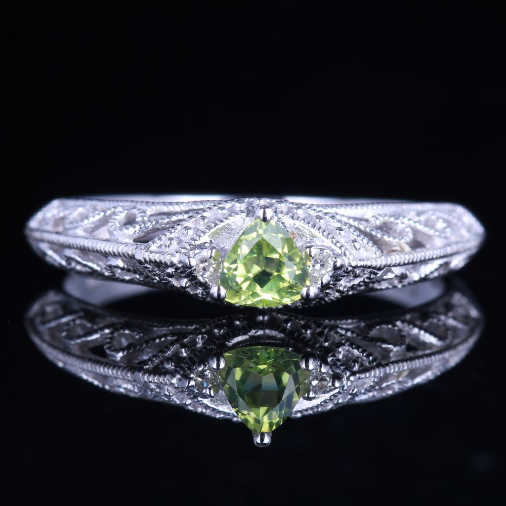 ★Metal:Solid 14K White Gold Stamped:14K/585 Total Gram Weight:2.3g Ring Size:6.5 (resizable) Setting:Pave,Prong Width Top:4.8mm Width Bottom:2.1mm ★Center Stone:100% Genuine Peridot Clarity:Flawless Shape:Trillion Size:4.5X4.5mm Carat Weight:0.26ct ★Side Stones:100% Genuine Natural Diamonds Color:H Clarity:SI-SI3 Shape:Round Single Cut Total Carat Weight:0.06ct SKU:R20710W Thank you for visiting our store.we offer excellent prices on high quality jewelry! ★Metal:Solid 14K White Gold Stamped:14K/585 Total Gram Weight:2.3g Ring Size:6.5 (resizable) Setting:Pave,Prong Width Top:4.8mm Width Bottom:2.1mm ★Center Stone:100% Genuine Peridot Clarity:Flawless Shape:Trillion Size:4.5X4.5mm Carat Weight:0.26ct ★Side Stones:100% Genuine Natural Diamonds Color:H Clarity:SI-SI3 Shape:Round Single Cut Total Carat Weight:0.06ct SKU:R20710W RESIZING IS AVAILABLE SHIPPING TIMES RETURN/EXCHANGE POLICY CUSTOM DESIGN ABOUT US RESIZING IS AVAILABLE ▲ ABOUT RING SIZE▲ ★ If there is no resize request from your ebay message before the pay,the ring with size we mail out is as per the one which in the ebay listing description.Resizing range can be US #3-13.It will need charge accordingly fee.Please contact us for details of charges with Ebay message. ★ Resizing greater than 4 sizes up or down may require a new shank. ★ Rates may be higher for wide rings, full eternity bands, or invisible setting. ★ If you buy a band match your main ring for set. Please enquiry us if the band will match your main ring before make the payment. ▲ ABOUT SEMI MOUNT CENTER SIZE ▲ Also make sure the setting will fit your stone size or not when you buy a semi mount . If our item don`t fit your stone,please do not make the payment. We can find other items to fit your stone or redesign for your stones. ▲ WARM REMINDER ▲ Items are declared at price purchased for customs purposes. If you wish to provide special instructions for your shipment please do so before or immediately after your purchase. Custom fees are a part of all overseas transactions, and differ in each country. We are not responsible for any custom fees incurred in receiving your item. Please all questions and requires before bid or pay for,all items must be paid for within a week after buy,or we will are not responsible for that the items have been sold out or on auction again,please inform inadvance if delay payment.Thank you very much! SHIPPING TIMES ▲Handling period▲ Please note our items include either a 1 day or 5 day handling period, depending on the item. Please see the Shipping & Payments section to view the exact handling period for this item. Expedited service may be available by special request. ▲Please contact us to request delivery by a particular day▲ Expedited Shipping We strongly recommend expedited shipping because we understand the importance of on-time delivery for birthdays, anniversaries, holidays and any other special occasions. ▲Shipping by Economy/Standard Shipping is very unreliable and delivery times are not guaranteed▲ We have no control the delivery times. As you know the peak holiday season and the shipping agency is extremely busy on handling parcels. As a result, it might need longer time to deliver this international parcel. Please contact us to request expedited shipping to avoid delays. RETURN/EXCHANGE POLICY Please inspect your order upon reception and contact us immediately if the item is defective, damaged or if you receive the wrong item, so that we can evaluate the issue and make it right. We give our best effort to take the most accurate photos possible, but often times photos do not do our beautiful jewelry justice. Please understand that color accuracy varies from monitor to monitor. In order to give the buyer a trustworthy and satisfactory Jewelry manufacturer. We accept the unconditional return. Your satisfaction is guaranteed, We stand by a full 100% money back return policy because our goal is for you to be happy with your purchase. We accept returns and we will give you a full refund except the shipping payment for the piece purchased if the item is shipped back within 30 days. Buyer is responsible for the cost of returning shipping. We need to be notified of the return of the item and it must arrive to us in the same condition we sent it out in. Item that have been altered in any way, such as sizing, setting center stone,are not eligible for return or exchange.There will otherwise be a restocking fee assessed. Items sent back for return without communicating with us will not be accepted.Please be sure to send a message to confirm with us. ▲ Return Policy Terms and Conditions▲ Return policy does not apply to any custom work or any pieces that were modified (other than resizing). Resized items are returnable for a full refund for the cost of the item with the exception of eternity bands. Items that were modified or custom pieces are subject to a restocking fee upon return. Custom design fees and service/shop fees are non-refundable. Any services, modifications, custom add-ons, special orders or expedited shipping fees are non-refundable. ▲ Feedback ▲ Our excellence in our products and service, is reflected by our feedback. Keeping our Service, in communication and shipping time, at a 5 star level is our priority. Please contact us with any problem you might have with any transaction, prior to leaving feedback, remember no problem is too small. We guarantee your problem will be resolved immediately. CUSTOM DESIGN We offer custom gold & diamond jewelry according to your designs special requires. The most selections of semi-mounts/settings,wedding bands, engagement rings, gemstone rings. Welcome bulk order or directly order,it can save your time from auction and do more business. ▲Customization process▲ Step 1: Send us a photo or drawing of your perfect ring or piece of jewelry. Step 2: We will provide you a full detailed estimate to meet your specific requests. Step 3: We re-cre