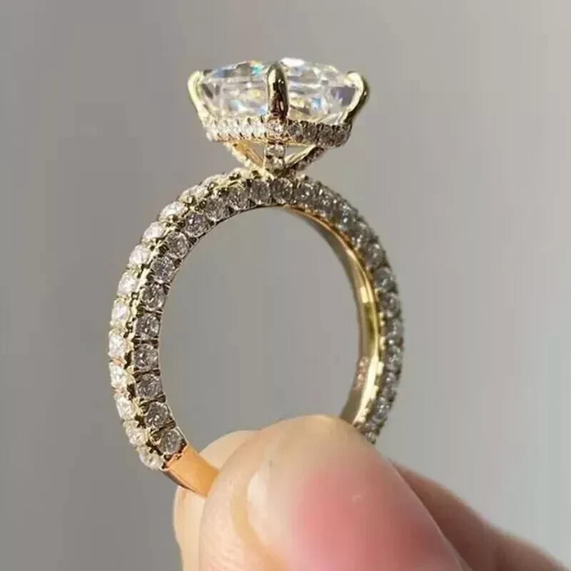 Elevate your special moments with the exquisite 14k Yellow Gold Plated Radiant Cut Natural Moissanite Women's Wedding Ring. Crafted to perfection, this ring features a dazzling 3.50CT white moissanite stone, radiating with the brilliance of a radiant cut. The gold plating provides a luxurious finish, complementing the gem's splendor. Designed for versatility, the ring is available in all sizes, ensuring a perfect fit for every occasion. Whether it's an anniversary, birthday, or any other significant event, this ring is an elegant choice. Personalization is welcomed to make this piece uniquely yours.