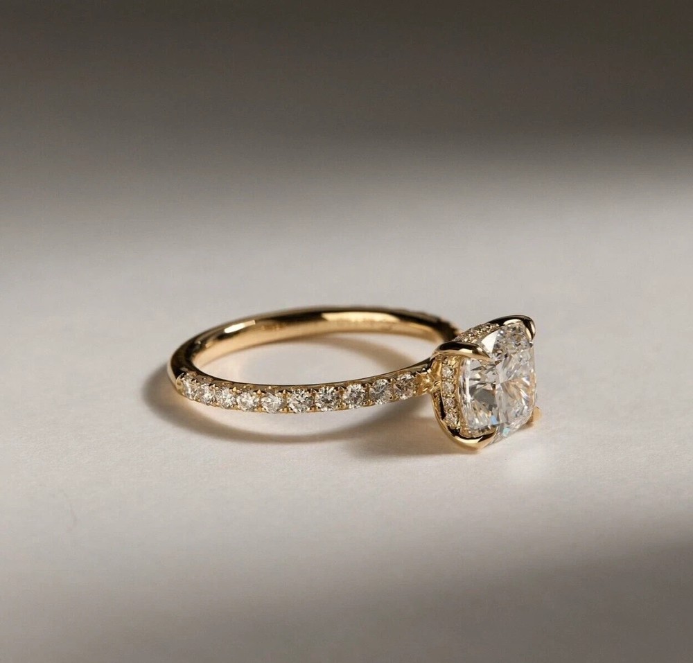 $ 46.4614k Yellow Gold Plated 2Ct Cushion Cut Natural Moissanite Women's Wedding Ring