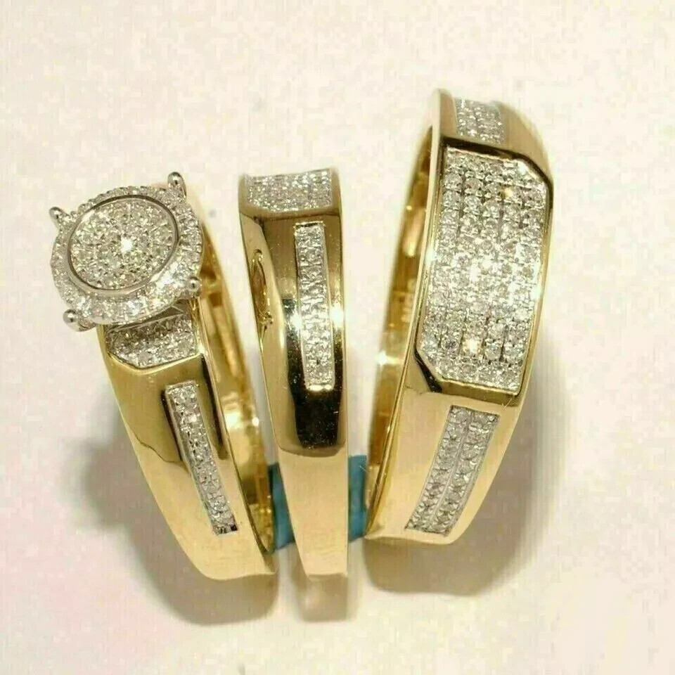 $ 85.814k Yellow Gold Plated 4Ct Lab Created Diamond His & Hers Wedding Trio Ring Set