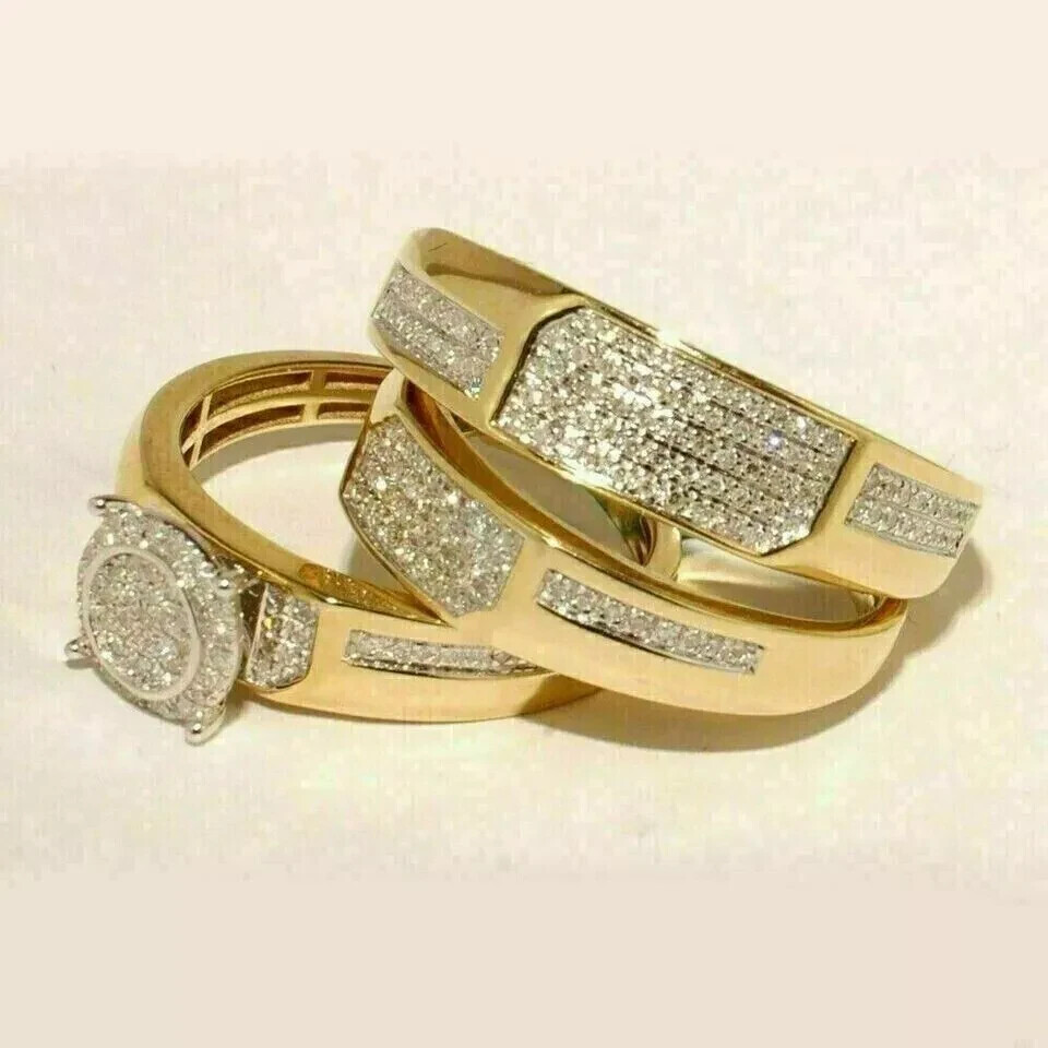14k Yellow Gold Plated 2Ct Lab Created Diamond His & Hers Wedding Trio Ring Set