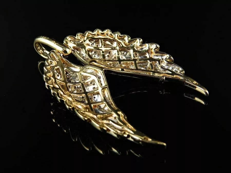 14k Yellow Gold Plated Open Angel Wings 1.50Ct Round Lab Created Diamond Pendant