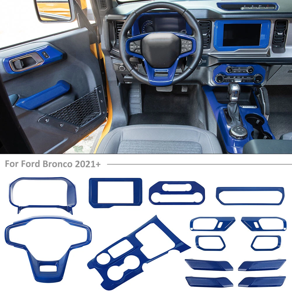 • Compatible models: For Ford Bronco 2021+ • Color: Blue • Material: High-Quality ABS • Packaging includes: 14pcs Interior Decoration Cover Trim Bezels Kit • 100% Brand New & Free shipping & free returns & 90 Days Warranty 14pcs Interior Decoration Cover Trim Kit Accessories For Ford Bronco 2021+ Blue You could stop searching! This is the best deal on eBay – guaranteed by over 50000 happy customers. CheroCar | Awesome customer's service GUARANTEED | Fast shipping Feature: ✔ 100% brand new, more original car feeling. Made of high-quality ABS, Never Rust, Corrode or Peel. ✔ The item can cover existing scratches and prevent from scratch and abrasion. ✔ Easy installation-With Double-sided adhesive tape, pls cleaning surface, heat the tape by a hair dryer for better adhesion,and press it almost 1 minute. ✔ Provides a high class and fashion decor style, change the ordinary interior and exterior design of the car and add unique colors. Fitment: • For Ford Bronco 2021+ Specifications: • Color: Blue • Material: High-Quality ABS Package Include: • 14pcs Interior Decoration Cover Trim Bezels Kit Installation Instructuion: • Please Ensure You Have Cleaned the surface of your car Before Install ! • Slightly heat 3M with a hair dryer before pasting effect better • Pressing gently for about 1 minute after Pasting Attention: • Please check your Car Model, reference our pictures before you purchase. • Within 48 hours after the product is installed, it cannot touch water,oil or dust. • Always buy with confidence, if you are not satisfied with this item, please let us know first by sending message or e-mail. We will reply to you within 24 hours and offer you our best services. We will offer a replacement, or you can return it to get a full refund in 30 days. Payment Return Shipping About Us FAQ Payment Payment Information Immediate payment is required upon selecting "Buy It Now" or upon checking out through the basket. We only accept payment via PayPal. When making a payment to us via PayPal, you can use your existing PayPal account. No financial information, passwords, credit card numbers or personal information other than your name, email address and shipping address is received by us. Although PayPal is extremely secure, Jecar is not responsible for protecting the personal information you share with them. You are encouraged to read the related PayPal policies carefully. Promotional:Please note that website discounts, coupons, and gift cards are not valid for use on eBay. Return -We hope that you will be pleased with your order. However, in the event that your order is not suitable, we are happy to accept returns for a refund (excluding postage) or an exchange with 30 days of purchase. -It is very important that you include a note with your eBay ID, name, reason for returning and return requirements. -In the event of a return, the customer is responsible for postage costs. It is highly unlikely that a product may be faulty, however in the case returning postage will be refunded on arrival. Exchange and Refund Process Returns are handled on a daily basis therefore your exchange or refund will be posted on the day that your return arrives; you will also receive an email to confirm this. Exchanges will be posted to the address associated with the original order (unless otherwise stated) and refunds will be issued to the original payment method only. PLEASE NOTE: All products that have been used or original packaging is incomplete will be charged 25% restock free Shipping Delivery Information: All orders are dispatched within 1~3 working day upon receipt of payment. This is an insured and tracked service with a transit time of 1-5 working days depending on postal service selected. Delivery times may vary, especially during peak periods. We currently ship to the United States. About Us Welcome! Welcome to TESIN, one of the fastest-growing online retailers of automotive parts and accessories today! We're proud to offer all of the leading brands in performance gear, interior accessories, and style upgrades, at prices suitable for any budget. Most importantly, we back every one of our products with the best one-on-one customer service you'll find anywhere. Customer Service Forget about those faceless online stores that hide behind hard-to-find contact info and robotic phone menus. At TESIN, serving our customers is priority number one. That's why, when you give us a call or chat with us online, you'll be communicating with a real person right here in Illinois. Whether you have questions about a particular product, want to place an order, or need to return an item, our experienced sales and service staff is ready to take your call. After all, YOU the customer are the most important part of our business! Don't just take our word for it, either. TESIN is proud to be a Better Business Bureau-accredited business with an A+ rating, a Google Trusted Store, and a Bizrate Customer Certified Store. With these kinds of credentials, we're a company you can count on. Customer Reviews If you want the most real, road-tested info about one of our products, don't take it from us - let your fellow auto enthusiasts share their experiences with our Customer Reviews. All of our Customer Reviews are written by real Jecar customers who have used our products and want to share their opinions. From fit and finish to performance and durability, our Customer Reviews will help you decide on the perfect parts for your vehicle. FAQ Frequently Asked Questions Q: How do I order? A: You can place your order online at any time using eBay secure shopping cart. Q: How do I pay for my order? A: We accept Visa, Mastercard, Discover, American Express, PayPal. Q: How will my order be shipped? A: We offer Ground Shipping for US orders ONLY (including Alaska and Hawaii). Q: What are your shipping and handling rates? A: Shipping and handling rates vary by product. Almost all of our items shipped within the continen