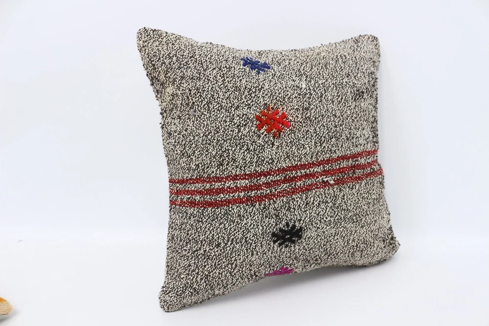 Kilim Pillow Details: All of my beautiful pillow covers or cushion cases are designed and made by me. I am making my throw pillow covers from handmade vintage rugs, Turkish rugs. Therefore, each of my vintage kilim pillowcase is one of kind. These cushions covers are piece of an art. The size of this pillow is 14 x 14 inches or 35 x 35 cm. The front side of this decorative pillow cover, cushion cover is wool on wool vintage kilim rug. The backside of this throw is high quality cotton fabric with a high quality zipper. This listing has 2 option for this handmade pillow. You can choose with insert or without insert. The listing photos is with insert in the pillowcase which is just for demonstration purpose. All of my vintage Turkish rugs have been professionally washed before I cut them as pillow case or cushion case so these kilim covers are 100 posent clean and ready to use. Due to the age and handmade nature of these vintage rugs, there might be imperfections and flaws that are not considered defects. This is a piece of a handmade vintage rug with minor signs of wear consistent with age and use that give it an antique look. You can see the condition of the rug pillow clearly in the detailed photos. I am going to ship your order of decorative pillow as soon as possible. I usually ship in the next day with DHL Express or FedEx which will deliver the kilim pillow, cushion cover just in 3-5 business days. It is my responsible until you receive pillow cover or pillow cover with insert at your door. If the pillow cover or insert get lost or damage during the shipping, I will ship the new kilim pillow cover or pillow insert for free as soon as possible. I take photos of my throw pillows indoor with professional camera which shows the real colors. The photos of these Turkish pillow covers are not altered. Keep in mind the colors of the rug vary slightly in different lights. Please contact to me for additional photos. I take the photos of my vintage rugs outside with daylight to show you the real and natural colors. My photos are not altered. Keep in mind the colors of the rug vary slightly in different lights. Please contact to me for additional photos. SATISFACTION GUARANTEED for your order in my shop. Your SATISFACTION is the most important to me. Please write me if you have any question or if you don't like anything from my pillow covers, cushion covers. If any reason, you are not happy from your Turkish pillow cover, I accept return without any hassle. Please read my shop policies for details. This cushion case or pillow cover can be used as decorative throw pillow, gift pillow, Christmas pillow case, bedding pillow, lumbar pillow, sofa pillow, bohemian pillow, boho pillow. You can find in any kind of Turkish kilim pillow cover in different design such as striped pillow, embroidered pillow, and geometric pillow.