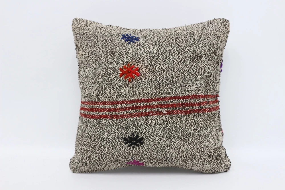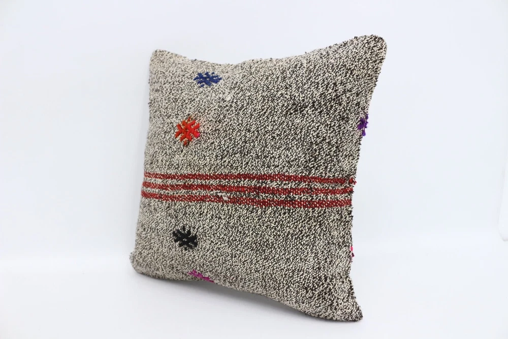 14"x14" Beige Pillow Cover, Vintage Kilim Pillow, Handmade Kilim Cushion