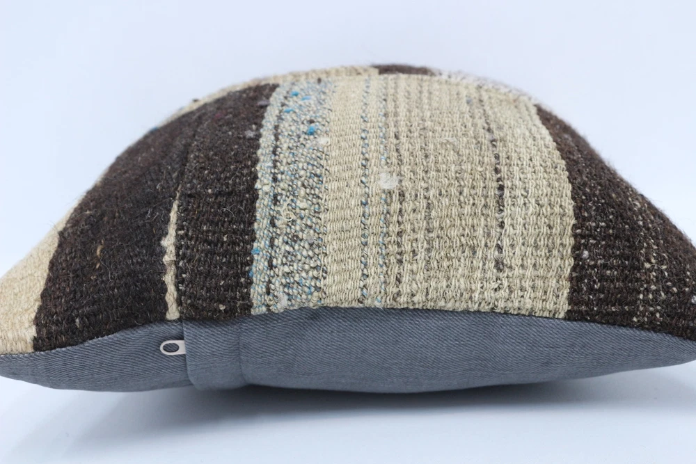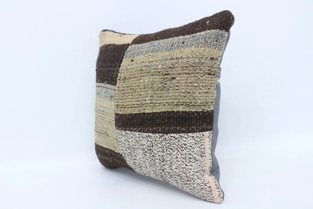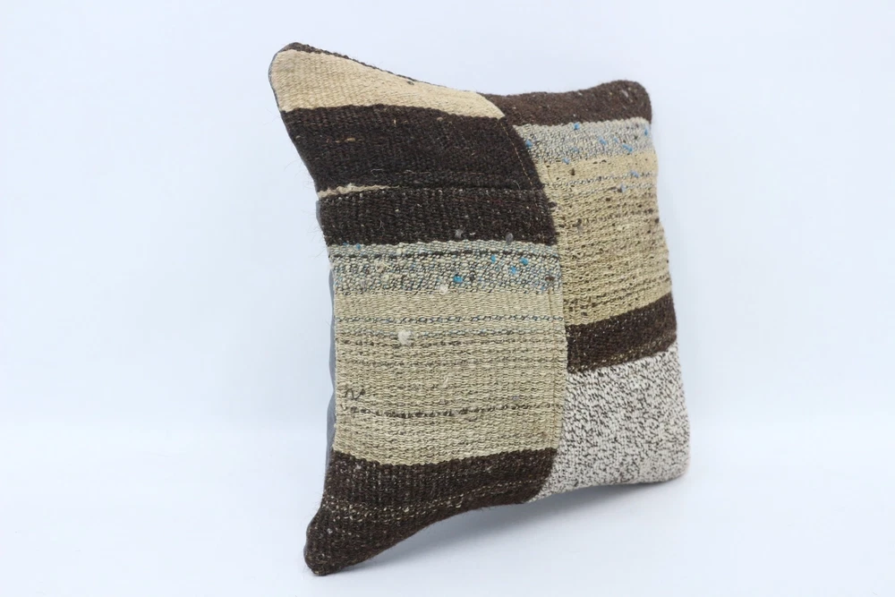 14"x14" Brown Pillow Cover, Kilim Pillow Cover, Vintage Kilim Pillow