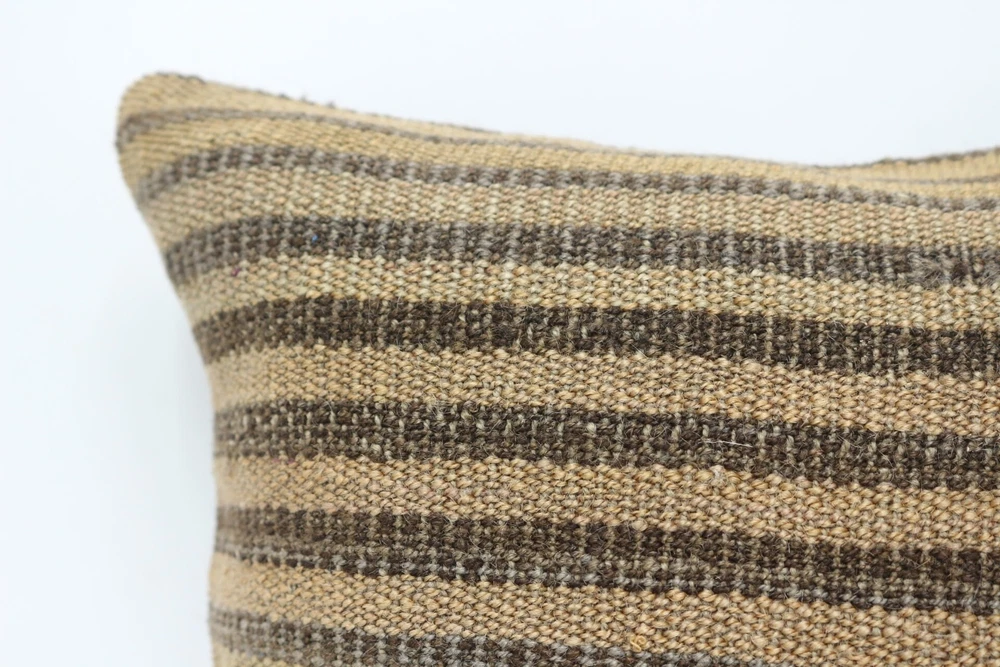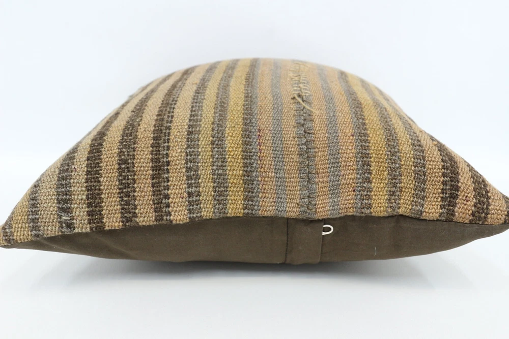 14"x14" Brown Pillow, Ethnical Kilim Rug Pillow, Turkish Kilim Pillow