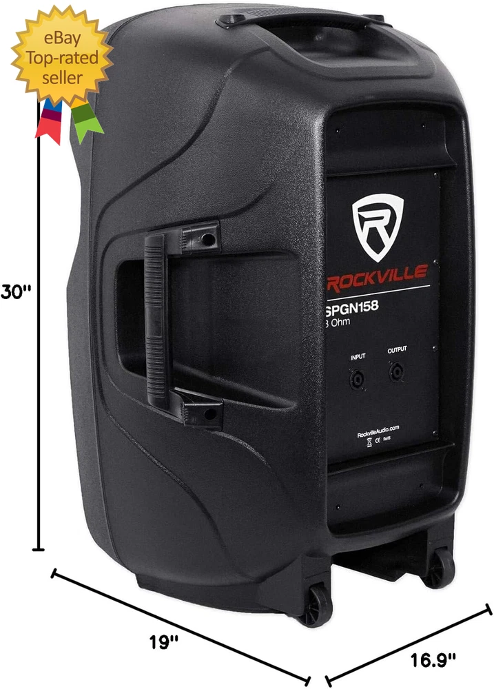 Store New Arrivals Add to Favorite View Feedback Contact SPGN158 15" Passive 1600W DJ PA Speaker 8 Ohm, Lightweight ABS Cabinet, Deep Bas Description Item model number SPGN158 Style 8 Ohm Number of Items 1 Power Source Corded Electric Country of Origin China Warranty Type Full Warranty Tweeter Diameter 1.35 Inches Woofer Diameter 15 Feet Vehicle Service Type Car Controller Type Voice control Unit Count 1.0 Count Speaker Size 15 Inches Speaker Maximum Output Power 1600 Watts Product Dimensions 19"D x 16.9"W x 30"H Includes MP3 player? No Model Name SPGN15 Impedance 8 Ohm Is Discontinued By Manufacturer No Included Components Cable & Connector Subwoofer Diameter 15 Inches Subwoofer Connectivity Technology Wired Recommended Uses For Product For Surround Sound Systems Connectivity Protocol Ethernet Item Weight 0.01 ounces Connectivity Technology Wired Audio Driver Type Dynamic Driver Mounting Type Floor Standing Color Black Surround Sound Channel Configuration 2.0 Frequency Response 20 KHz Speaker Type Woofer Global Trade Identification Number 00811080025285 Is Waterproof FALSE Audio Output Mode Mono Audio Driver Size 15 Inches HIGH-POWER AUDIO PERFORMANCE:- Delivers 1600W peak power with a 15" woofer and 2.5" voice coil, producing clear highs and deep bass for concerts, parties, or presentations. LIGHTWEIGHT AND PORTABLE DESIGN:- Weighs only 35 lbs with a durable ABS cabinet, featuring built-in handles for easy transport to gigs or events. VERSATILE COMPATIBILITY:- 8-ohm impedance pairs seamlessly with most amplifiers and powered mixers, ideal for DJs, bands, or venue sound systems. FLEXIBLE SETUP OPTIONS:- Includes pole mount and sturdy base for stage or tripod use, simplifying installation for live performances or speeches. BUILT FOR RELIABILITY:- Rugged ABS construction withstands demanding environments, ensuring consistent sound quality for professional and casual use. Product Description Rockville SPGN158 15" Passive 1600 Watts Peak 8-Ohm Lightweight DJ/PA Speaker With 3“ Aluminum Voice Coil For Amazing Sound Clarity Features: Rockville SPGN158 15“ Passive 1600 Watt 8 Ohm Lightweight DJ PA ABS Cabinet Speaker Power Handling: 400 Watts RMS / 800 Watts Program Power / 1600 Watts Peak High power long-throw 15'' woofer with 3“ aluminum voice coil provides incredibly deep bass and acoustic power High-power 2-way pro sound reinforcement speaker system for live sound and play back applications Compact and light weight system delivers distortion free sound even at extreme SPL State-of-the-art 1.35'' Japanese made pure titanium-diaphragm compression driver for crystal clear high-frequency reproduction Twist-Lock speakon input and output connections Stage floor or stand mounting with 35-mm pole socket Ultra-wide dispersion, 40° large-format horizontal wave guide horn molded directly into the cabinet Versatile trapezoidal enclosure design allows different positioning Tilts on its side for use as a floor monitor Ergonomically shaped handle for easy carrying and setup High-quality components and exceptionally rugged high impact ABS construction Impedance: 8 Ohms ABOUT US We offer the best prices around on high quality products. Our E-store includes media such as books, movies, music and games while offering electronics, toys, sporting apparel, clothing, tools, general home, garden items and more. SHIPPING We are always working hard to ensure your package arrives as soon as possible. Please understand that some factors like weather, high postal traffic, and the performance of shipping companies are outside of our control. We offer free shipping to the lower 48 states and ship within 2 business days of payment, usually sooner. We do not accept P.O. Boxes. Please provide a physical address. For shipping outside of the continental USA, we only use eBay's Global Shipping Program. The item is shipped to IL and then sent to the rest of the world. International customers are responsible for all duties and taxes. Continue to 'check out' to calculate costs for shipping the item to your country. Messages regarding eBay's Global Shipping Program MUST be directed at eBay EXCLUSIVELY. RETURNS We do not accept returns under normal circumstances. However, we will gladly consider a return if the item is received broken or if the wrong size is sent to you. In all other cases, returns will not be accepted. CUSTOMER SATISFACTION We try our very best to make sure every customer is completely satisfied. If there's a problem, message us! We're happy to help.