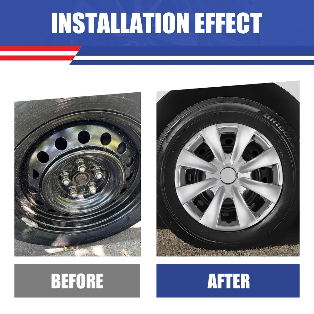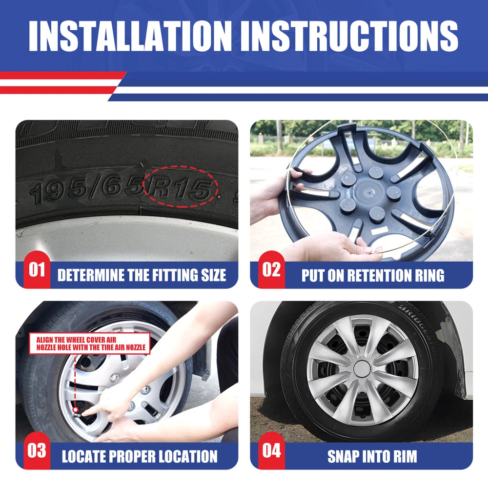 $ 21.124pcs Black Matte Wheel Cover Snap On Hub Caps For R14 Tire Steel Rim 14"+15"+16”