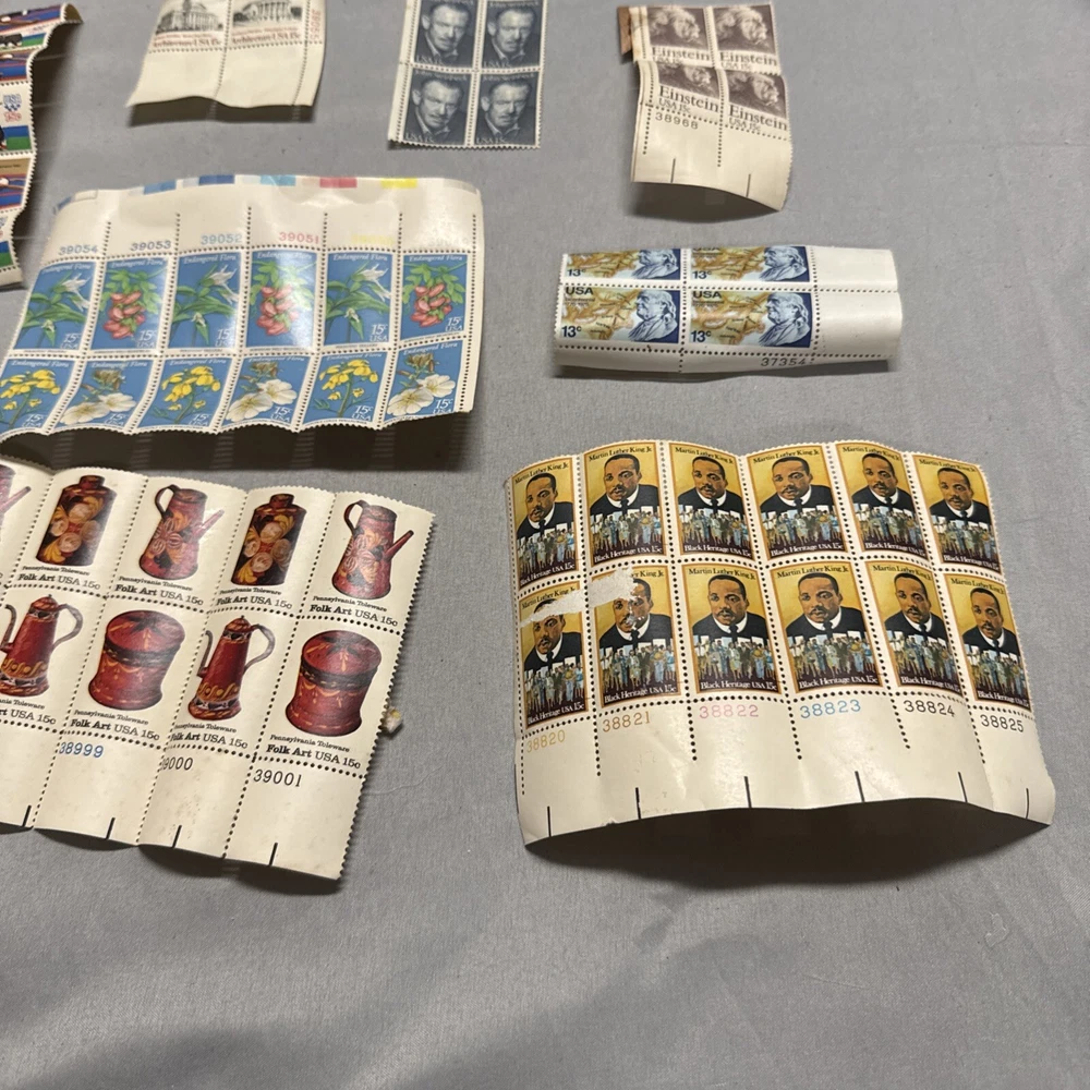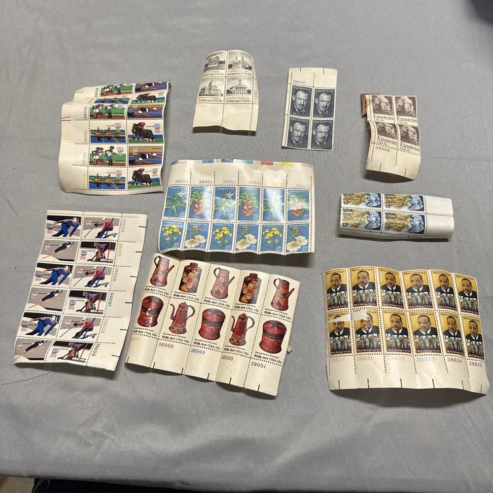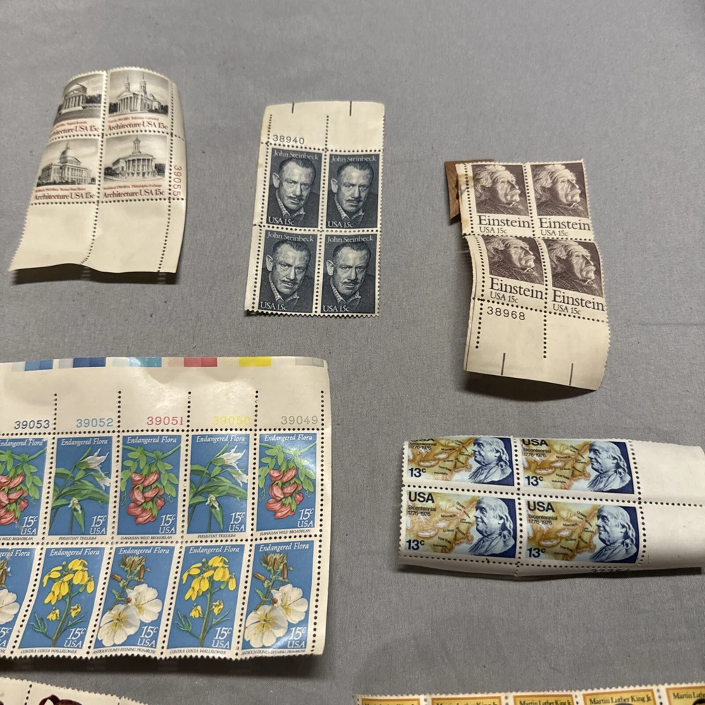 15 Cent Stamp Lot 9 Varieties 1970's Olympic, Mlk Jr, Folk Art