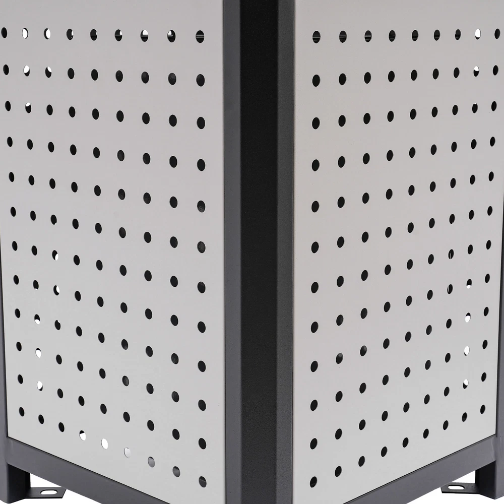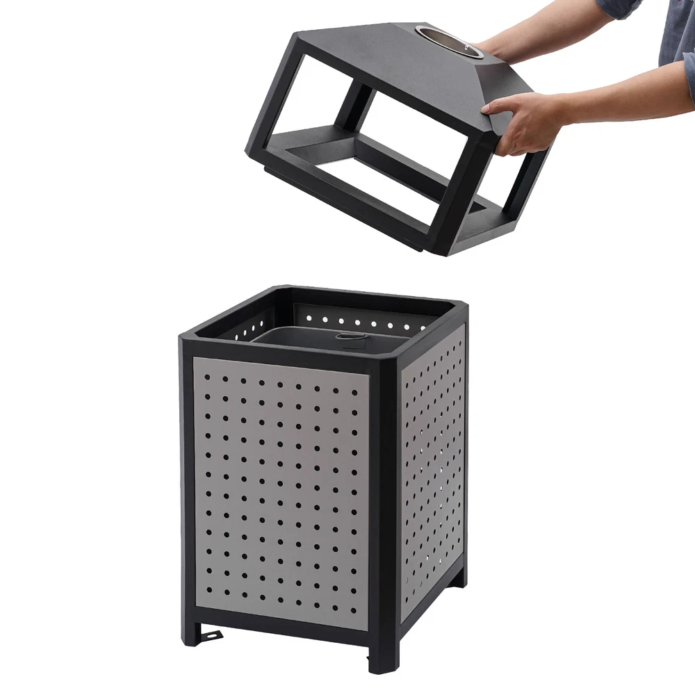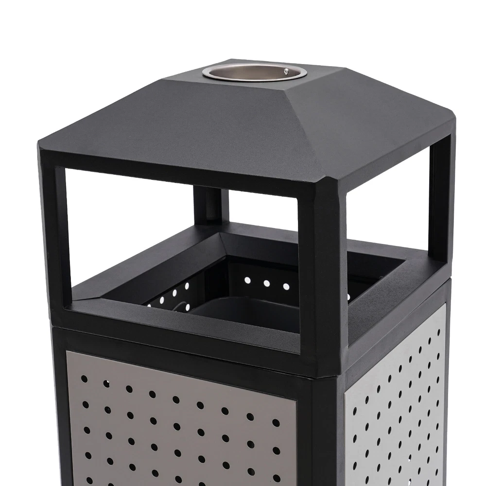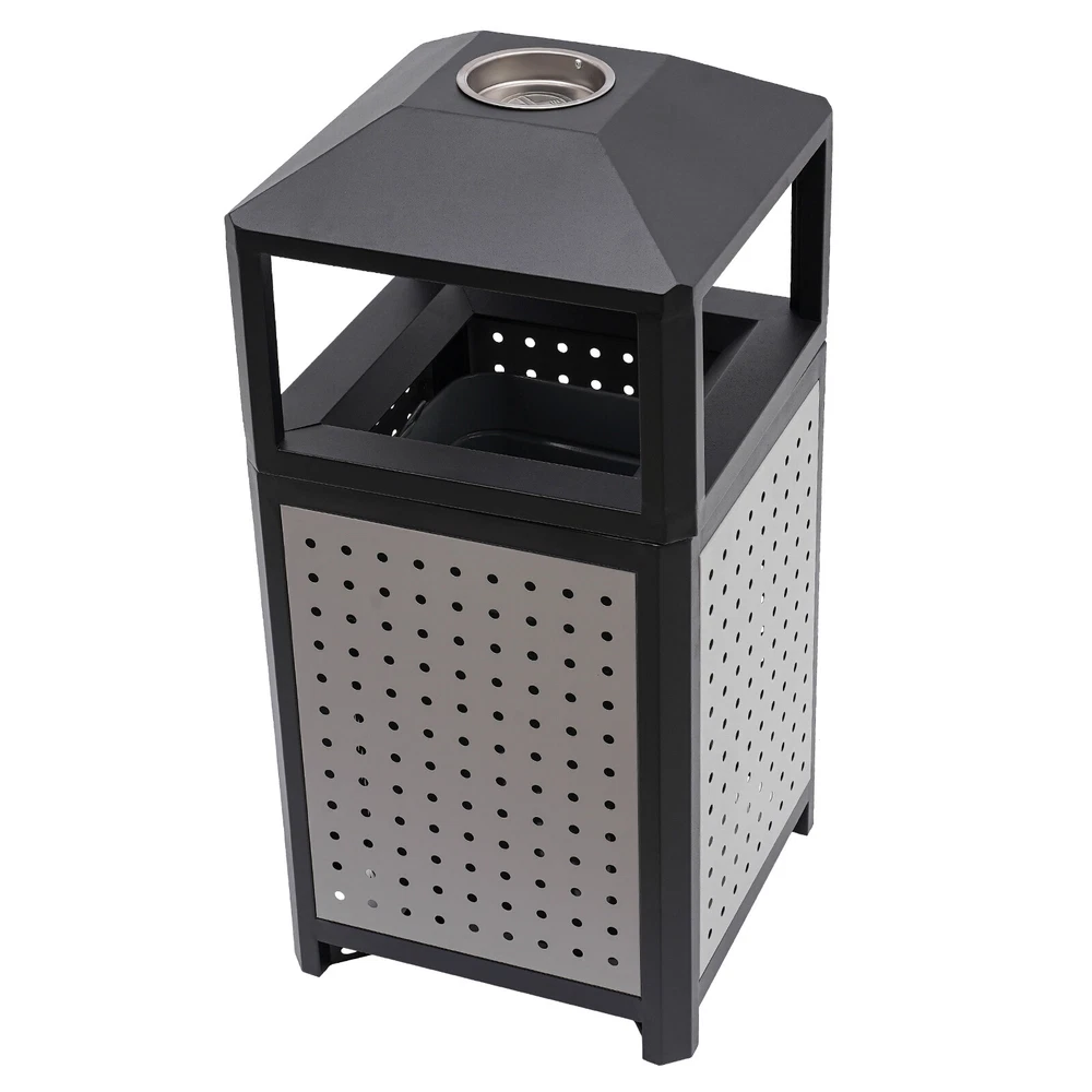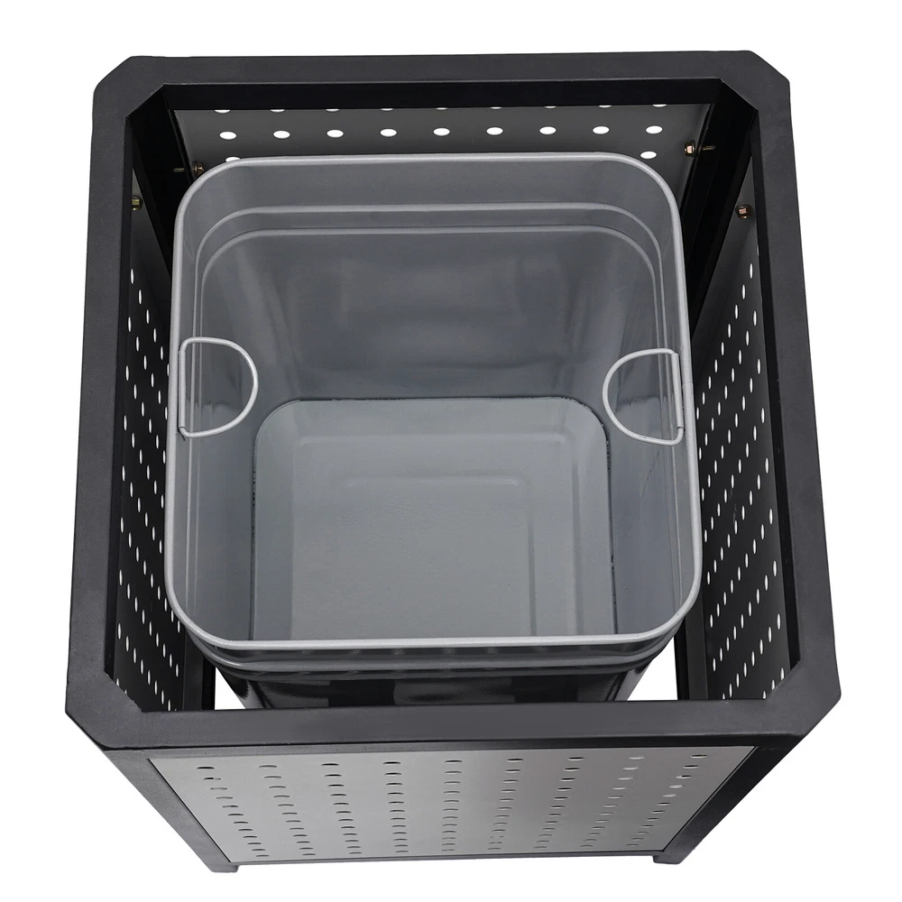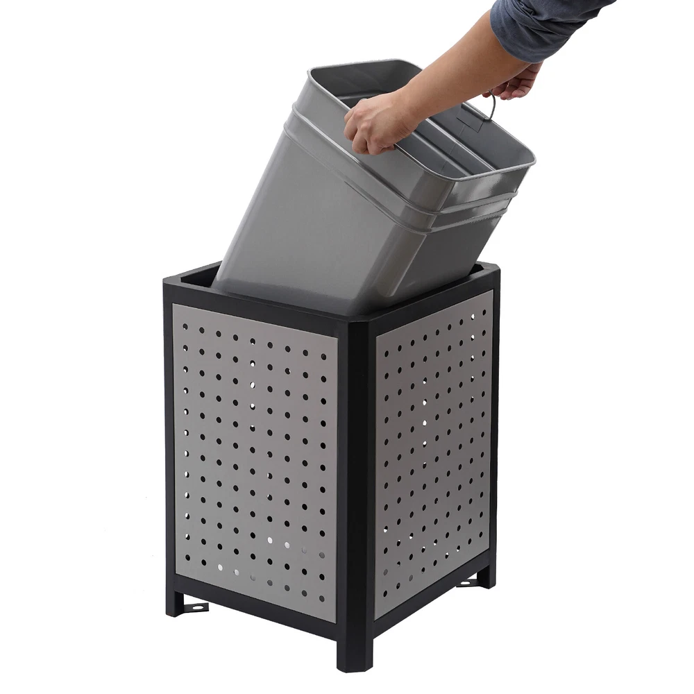 15 Gal Commercial Waste Container Outdoor Trash Can Garbage Enclosure Gray NEW Description The industrial waste container is made of high-quality galvanized sheet material with a smooth, rust-resistant surface for long-lasting durability. Its 15-gallon large capacity design can store more garbage, effectively reducing the pollution of garbage, and is more convenient for garbage cleaning and management. Its modern style and generous appearance design make it blend into the surrounding environment, which is not only practical but also beautiful. It is an indispensable item in modern life and an excellent waste disposal solution for you! Key Features Premium Material: It is made of galvanized board and stainless steel featuring high hardness, high strength, and resistance to rust, corrosion, and heat. Besides, its high-temperature plastic spray and bake paint processes provide extra protection to its surface, greatly extending its service life. Exquisite Appearance: Its modern style appearance will show you the beauty of simplicity and neatness, making it also a good view on the street or in your backyard garden. Large Capacity: Its 15-gallon capacity can hold more trash and greatly reduces the number of times you have to clean out your trash, which helps you save time and be more productive. Easy to Install: Its most parts are well assembled, you just need to put the inner barrel in and install the lid and fix it on the ground with four expansion bolts, which will not cost you much time. Ventilate Design: The great number of ventilated holes and grid-style bottom provide it with a wonderful ventilation condition to dispel the odor generated by garbage and reduce bacterial growth. Convenient to Use: Its four-sided wide-opened mouth(10.5*6.5 inches) can swallow your garbage from each side you throw, which is very convenient. Easy to Clean: Its smooth surface, detachable lid and inner barrel make the clean work easy and labor-saving with water flushing or wiping it with a damp cloth. Customer Service: We aim to provide quality products and services. If you have any problems, please feel free to contact us. We will reply and solve the problem for you as soon as possible. Details Build-in Ashtray: The stainless steel ashtray is on the top of the lid and is strong, durable, and fireproof. It well meets the needs of the smoking crowd and also reduces the occurrence of fire accidents. Top Cover: It helps to protect against rain and snow, thus preventing odors from being aggravated by wet garbage and reducing sweeping pressure. Inner Barrel with Handle: With two handle rings, you can easily lift it out for cleaning or dumping garbage. Elevated Base: It separates the inner barrel from floors, pests, and dust and reduces the abrasion that can occur when in contact with hard surfaces. Application It can be used in conference rooms, banquet halls, restaurants, hotel lobbies, outdoor patios, cafes, recreation and picnic areas, corporate and college campuses, boardwalks, tourist attractions, and other high-traffic outdoor and indoor locations. Specifications Color: Grey Material: Galvanized Board, Stainless Steel Surface Treatment: High-Temperature Plastics Spray, Bake Paint Recommended Uses For Product: Outdoor Shape: Square Mount Type: Screw Mounted Assembly Required: Yes Capacity: 56.78L/15gal Product Size(W*H): 40.64*84.46cm/16*33.25inch Side Opening Size: 26.67*16.51cm/10.5*6.5inch Packaging Size: 86*41*41.5cm/33.86*16.14*16.34inch Gross Weight: 12kg/26.46lbs Net Weight: 11kg/24.25lbs Package Included 1* Industrial Waste Container 4* Expansion Bolts Notes 1.Please check the size carefully before ordering. 2.It is normal that the expansion screw will blow up after the force is applied. 3.Please allow the slight color difference caused by the shooting light and 1-3cm error due to manual measurement, and make sure you do not mind before you order.