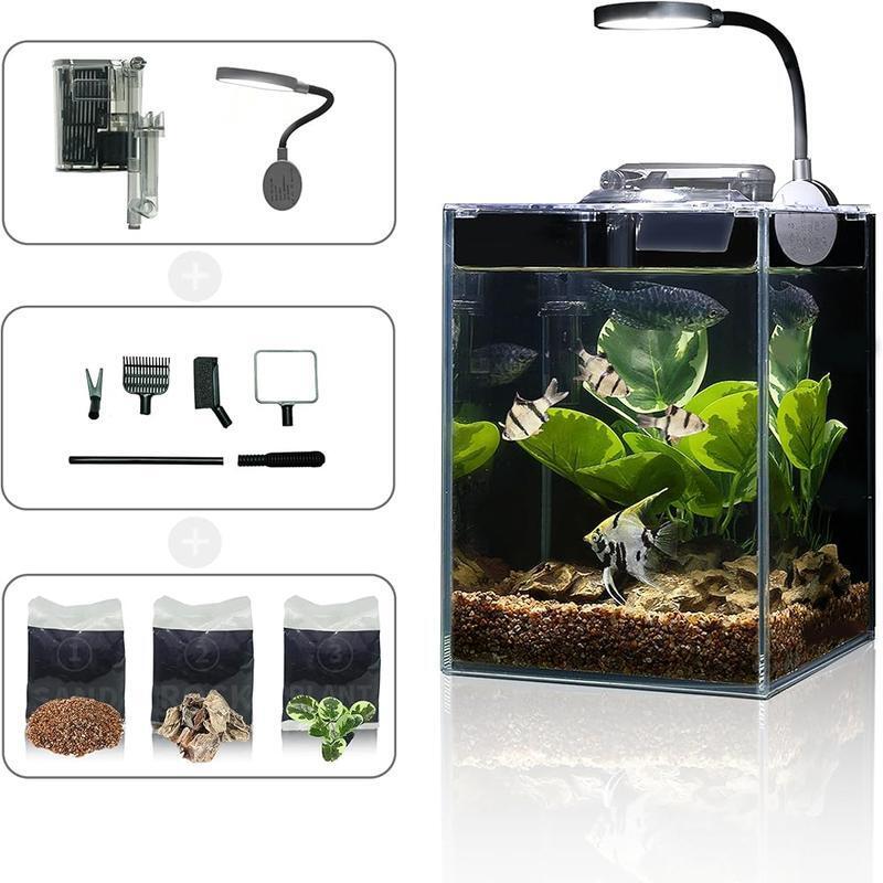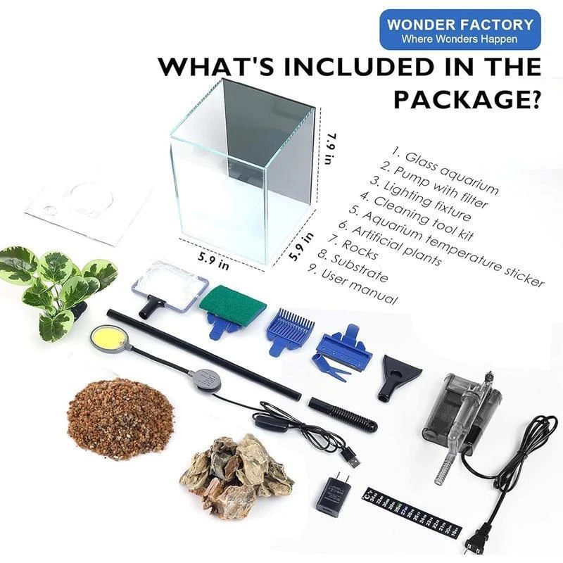 You may also like 10 Gal Fish Tank Hood LED Bulbs Integrated Cutouts Lightweight Home Office New 37.21 USD 39.17 USD Free shipping 5% off 20 Gal Aquarium Starter Kit Plastic Hood LED Hood Lighting 3 Stage Filtration US 150.19 USD 158.1 USD Free shipping 5% off About this item 【THE MOST COMPREHENSIVE ALL-IN-ONE KIT】The 1. 5 Gallon aquarium starter kit is one of the most comprehensive all-in-one sets available. This small fish tank kit includes an HD float glass fish bowl, Double - layer mini aquarium lid, hob filter, plant light, landscaping substrate sand and rocks, artificial plants (not plastic), a thermometer, a full set of 5-in-1 cleaning tools, and a rotating display base. All you need to do is add your favorite fish. 【INNOVATIVE 3-IN-1 ULTRA-QUIET FILTER PUMP】The small fish tank adopts a unique 3-in-1 adjustable flow ultra-quiet water pump. Betta fish tank includes two types of biological and one type of physical filter media, providing filtration, oxygenation, and oil film removal. The aquarium's powerful filter pump has an 80 GPH flow rate, and effectively absorbs harmful substances, achieving a self-cleaning aquarium. ≤30dB noise level provides a quiet environment for your fish. 【TRUE RIMLESS HD FLOAT GLASS FISH TANK】This betta fish tank is made of 4mm/1. 57-inch thick automotive-grade HD float glass, with a light transmittance of up to 92%, providing a 4K movie-like viewing experience. Compared to acrylic or ordinary glass, its cost is usually more than 100% higher. Additionally, this desk fish tank with filter is equipped with a COB aquatic plant light, which better supports plant growth. 【FISHKEEPING TIPS】Mini desktop aquariums are suitable for small fish and low-space-requirement creatures, including bettas, zebra fish, miniature freshwater shrimp (such as cherry shrimp), African dwarf frogs, snails (such as apple snails or mystery snails), and small tetra fish. Please note that overstocking should be avoided, and regular water changes are necessary to maintain clean water quality 【BEST GIFT FOR KIDS/BEGINNERS】 Having a fish bowl can bring a fun and rewarding experience. For children, aquariums help cultivate a sense of responsibility and love for nature, the environment, and other forms of life. small aquarium provides plenty of parent-child interaction topics and experiences. For adults, the Wonderfactory 1. 5-gallon small fish tank not only decorates your indoor space but also helps relieve stress and improve mood. 【Important Notice】The WonderFactory aquarium has a capacity of 1. 5 gallons; please refrain from ordering if this size does not meet your needs. Due to the fragility of glass aquariums, there is a potential for damage during shipping, especially during long-distance transportation or courier handling. Brand: Wonderfactory Target Species: Fish Material: Glass Tank Volume: 1. 5 Gallons Special Feature: Drainage Hole Product Dimensions: 5. 9"L x 5. 9"W x 7. 9"H Item Weight: 1. 5 Kilograms Shape: Rectangular Specific Uses For Product: Indoor Style: Modern and Simple You may also like Airtight Stackable Pet Food Storage Container Heavy Duty Dry Dog Food Lockable 35.05 USD 36.89 USD Free shipping 5% off Freeze Dried Emergency Food Raspberries Camping Meals All Natural 10 Can 8 oz US 44.64 USD 46.99 USD Free shipping 5% off Pistol Grip Handgun Sprayer Wand Adjustable Nozzle ATV Spot Trailer 300 psi New 27.78 USD 29.24 USD Free shipping 5% off Crystal Cat Litter Tray Refills 3 Pack Odor Control Leak Protection Durable Home 86.3 USD 90.84 USD Free shipping 5% off Turf Saver Lawn Garden Tire 18X9.50 8 Load Range A Traction All Season Black New 85.95 USD 90.47 USD Free shipping 5% off Dogg Catcher 2 Electronic Predator Call Remote Coyote Fox Sounds 3851,Multi New 74.63 USD 78.56 USD Free shipping 5% off 30 Cans 24 L Electric Cooler Thermoelectric Car Cooler Portable Car Travel Grey 95.53 USD 100.56 USD Free shipping 5% off Mobile Tool Storage Stack System Tool Box W/ Dividers Organizer Durable Plastic 32.78 USD 34.51 USD Free shipping 5% off Polyethylene Shrink Wrap 7mil 14ft X 50ft Boat Film Heat Gun Use Storage Durable 180.21 USD 189.69 USD Free shipping 5% off Locking 4-Bike Hitch Rack 2 Inch Receiver Quick Install Secure Carrier 140lbs US 291.55 USD 306.9 USD Free shipping 5% off Kettle Cooked Potato Chips Variety Pack 40 Single Serve Bags Snacks On-the-Go US 27.61 USD 29.06 USD Free shipping 5% off 8Ft Extendable Tailgate Table Foldable Camping Outdoor Canopy Not Included White 82.46 USD 86.8 USD Free shipping 5% off