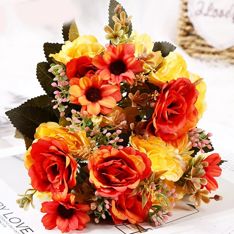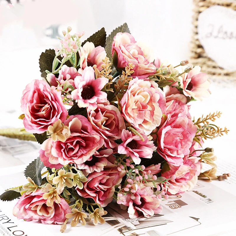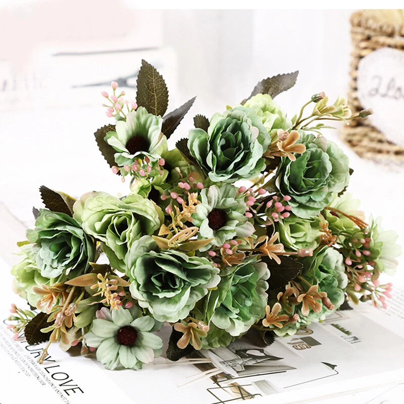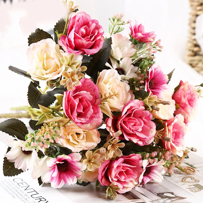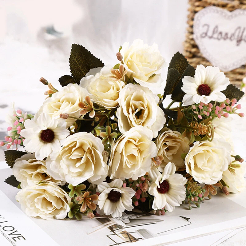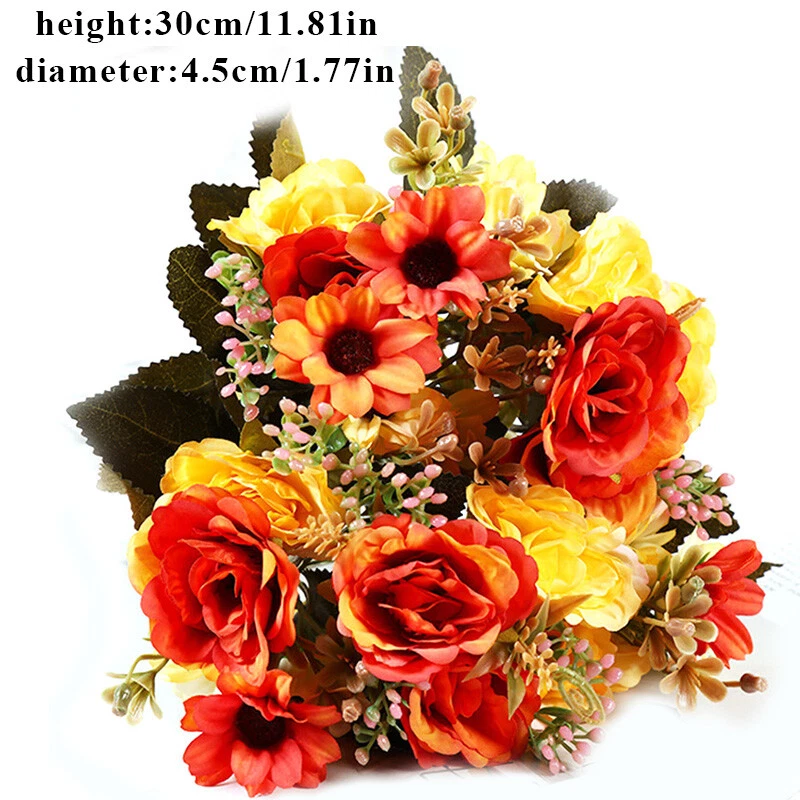 15 Heads Artificial Silk Fake Flowers Bunch Bouquet Wedding Home Party Decor +