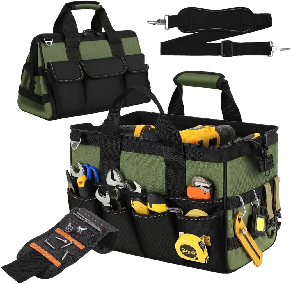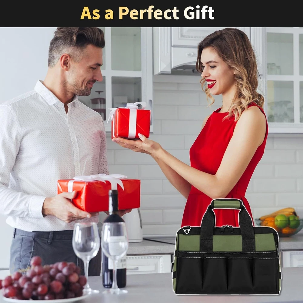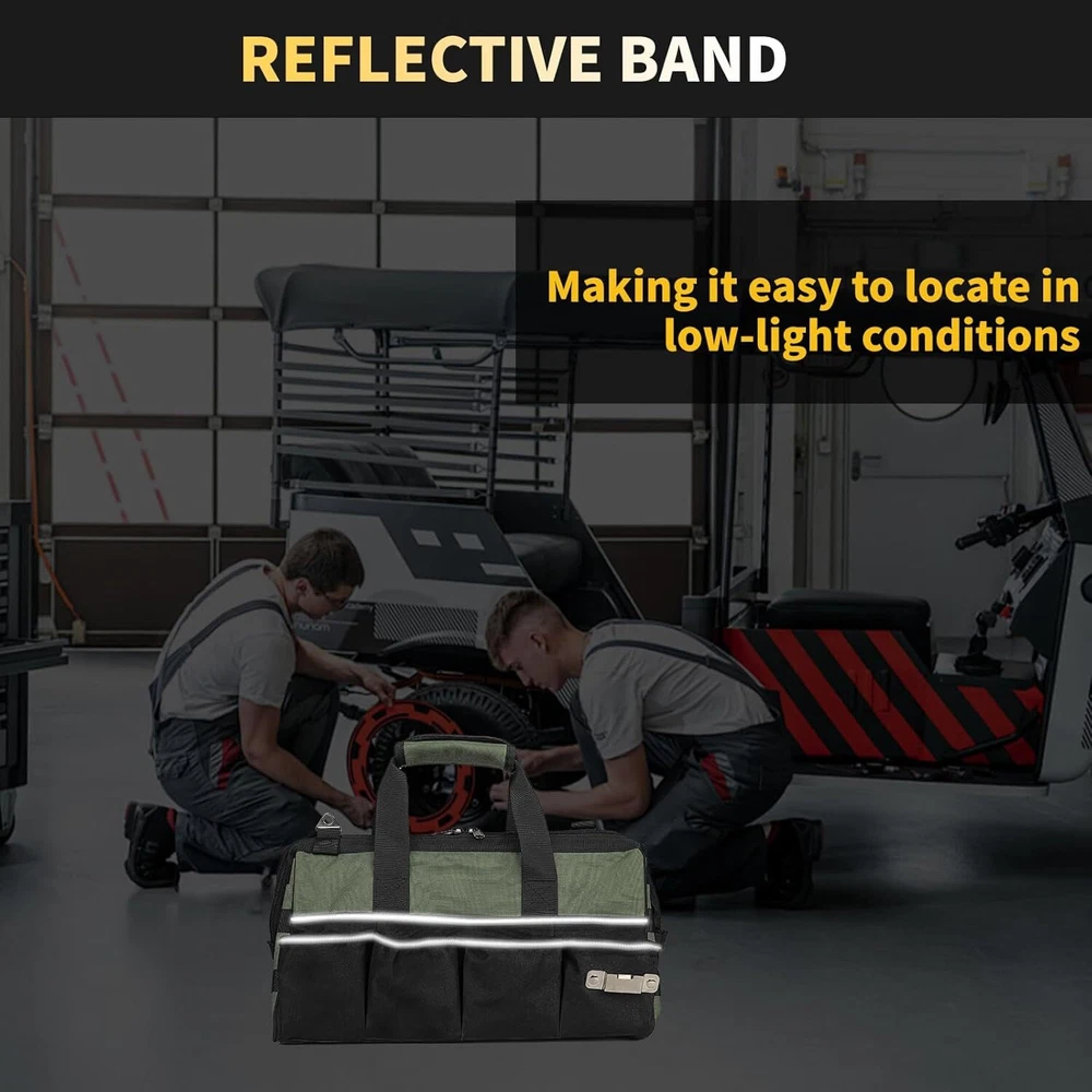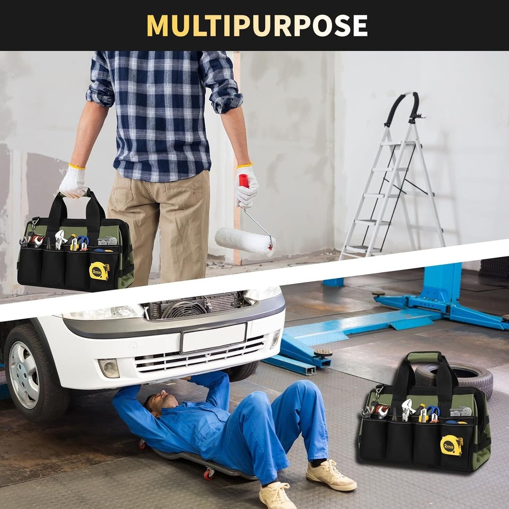 15" Heavy Duty Wide Mouth Tool Tote Bag with 25 Pockets and Soft Interior