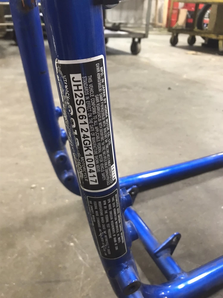 -Condition: It is bent as shown. Please look at all pictures. THE SHIPPING PRICE IS AN ESTIMATE BEFORE BUYING PLEASE EMAIL ME WITH YOUR ADDRESS BEFORE BUYING.THIS FRAME IS SOLD FOR PARTS OR CUSTOM BUILDING ONLY. IT COMES WITH A BILL OF SALE FROM BORES CYCLE SALVAGE. NO TITLE. NO MSO. THE ORIGINAL TITLE IS RETURNED TO THE STATE OF OHIO AFTER WE DISMANTLE THE VEHICLE. THIS IS OHIO LAW. PLEASE CHECK WITH YOUR STATE OR COUNTRY ON USING THIS FRAME. IN MOST STATES, THE ORIGINAL VIN NUMBER IS REPLACED WITH A CUSTOM VIN NUMBER, BUT PLEASE CHECK WITH YOUR LOCAL BMV FOR CLARIFICATION ON THEIR LAWS BEFORE BUYING. -Part was removed from a 2015 Honda VT 1300 CX Fury. VIN: JH2SC6124GK100417. -What you see in the pictures is what you get. We have many other parts available check out Bores Cycle for more parts. -Please look at all pictures and read entire description before buying. - Mounting hardware is only included if it is shown in the pictures. * We are striving for 5 star ratings in every category from all of our customers. If you are not 100% satisfied with your order, please email me with any problems before leaving negative/neutral feedback, or anything less than 5 stars. I will do my best to resolve the issue. Thank You -Mike Shelf A-?-? Thank you for looking at an item from Mikes Motorcycle Parts. All parts are shipped out within1 business day of payment clearing. Look at pictures closely and ask any questions, I try to describe parts as best I can. International shipments take longer sometimes due to items going through customs so please be patient. Thanks -Mike Powered by SixBit's eCommerce Solution