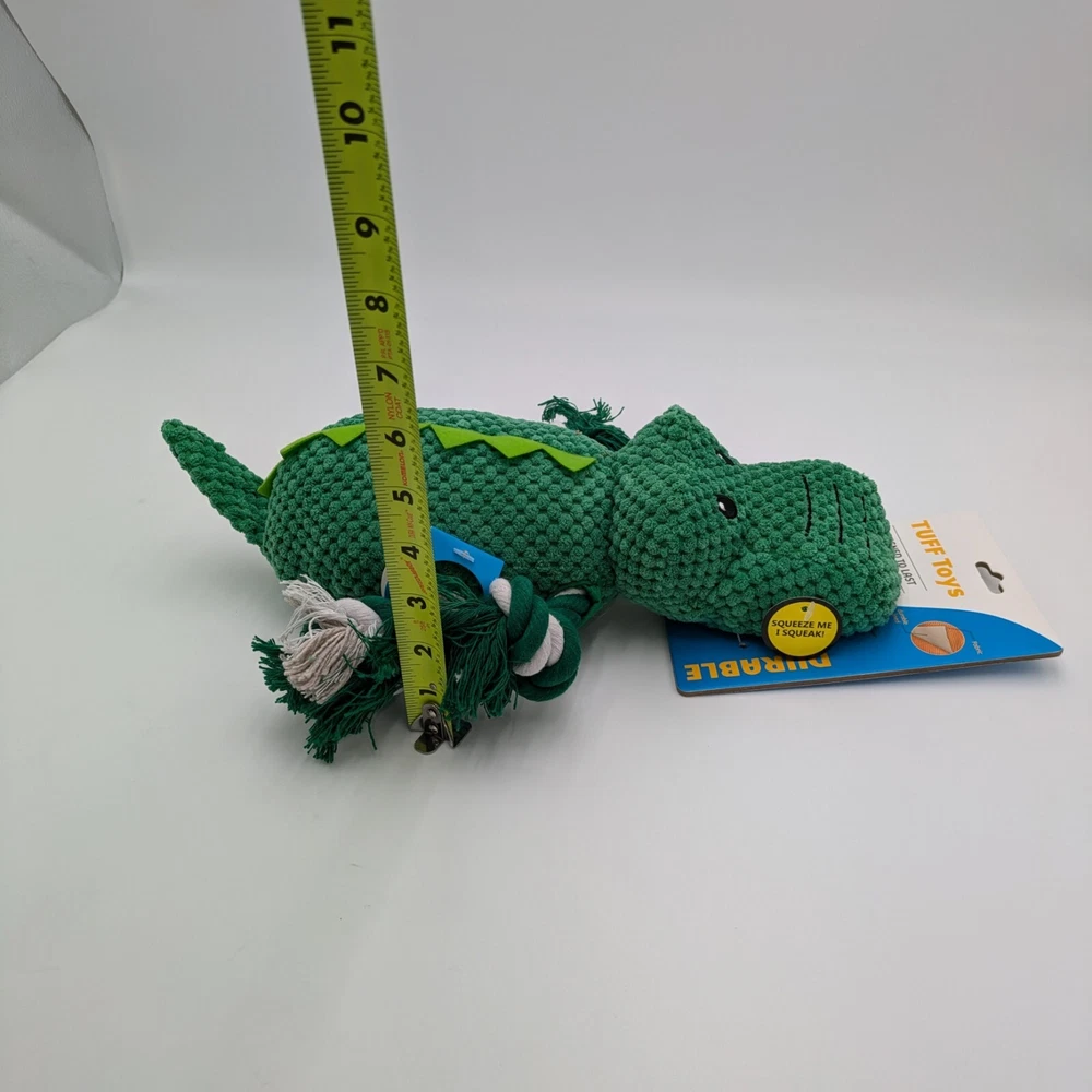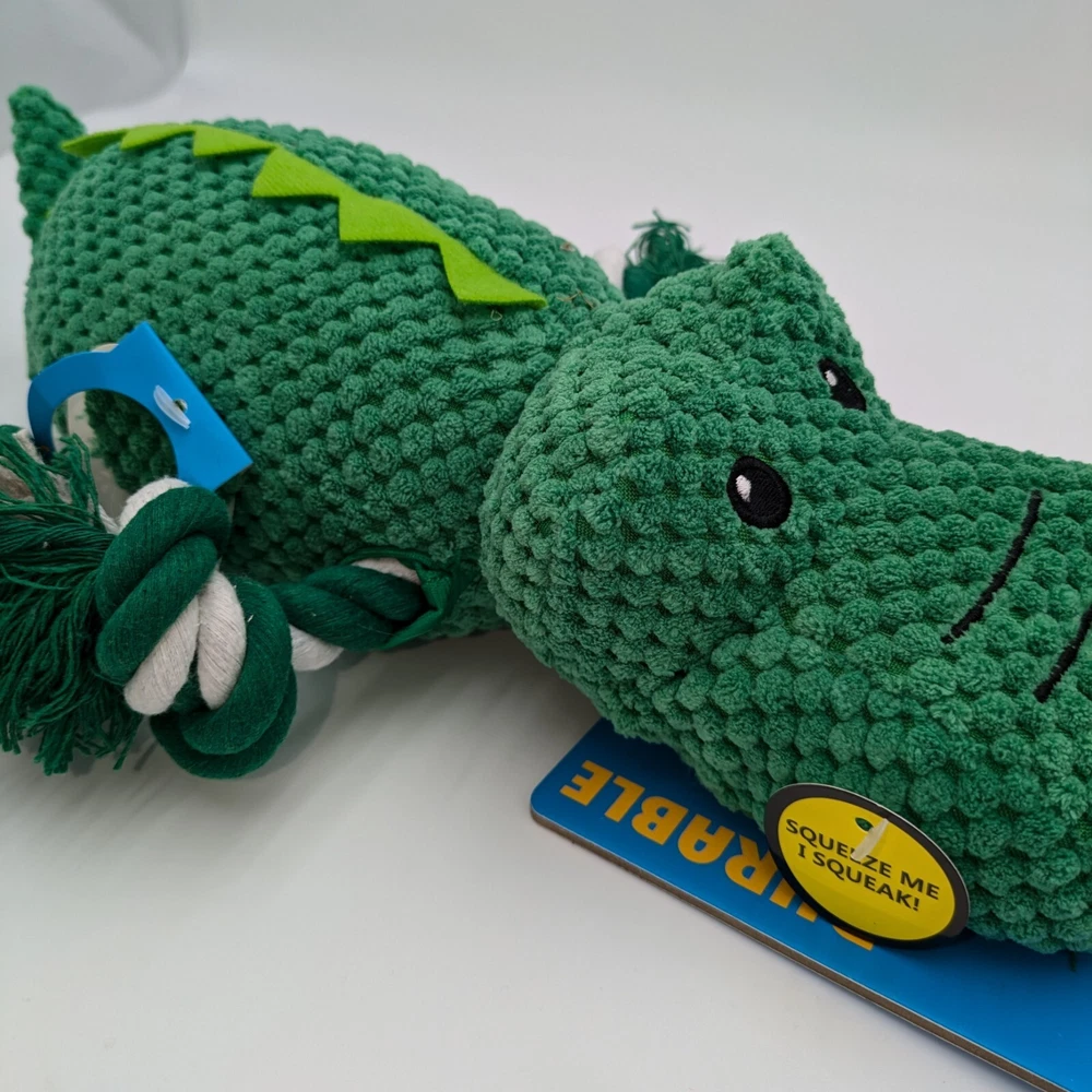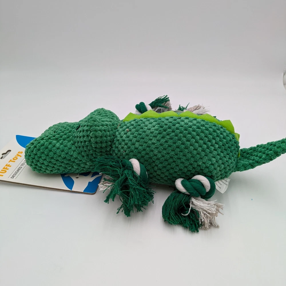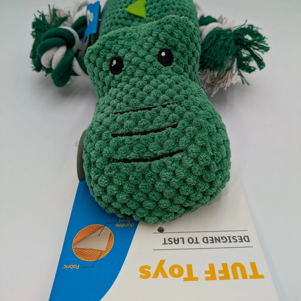 This 15-inch alligator dog toy is perfect for interactive play with your furry friend. Made with durable rope material, it is designed for large and medium-sized dogs. The toy comes with tug ropes for added fun and is brand new. The alligator design is sure to catch your dog's attention and provide hours of entertainment. Made in China, this interactive toy is a great addition to your dog's toy collection. Ideal for playing with your supervision this toy is sure to keep your dog happy and healthy.