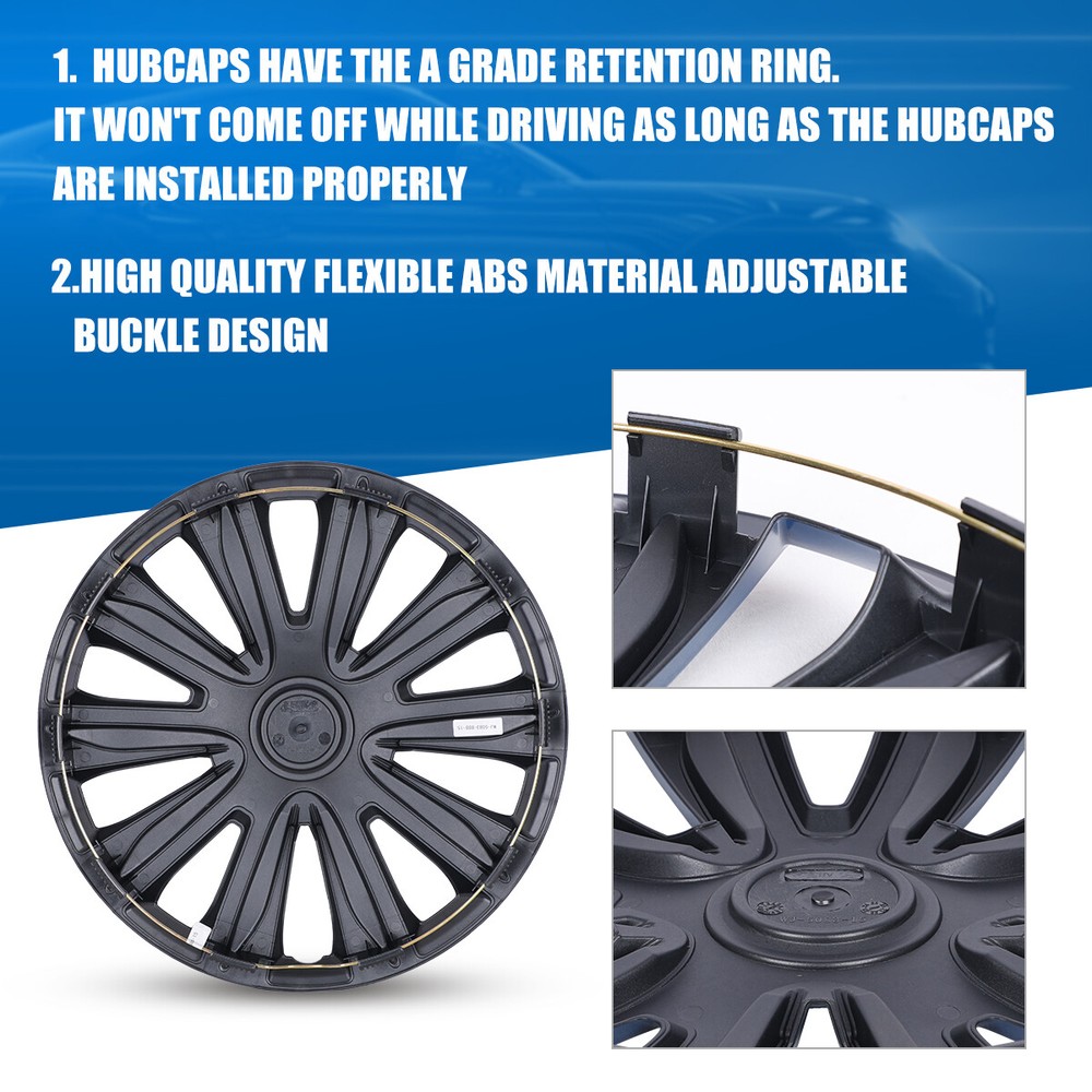 15" Glossy Black 4-Piece Wheel Rim Covers for R15 Tires & Steel Rims