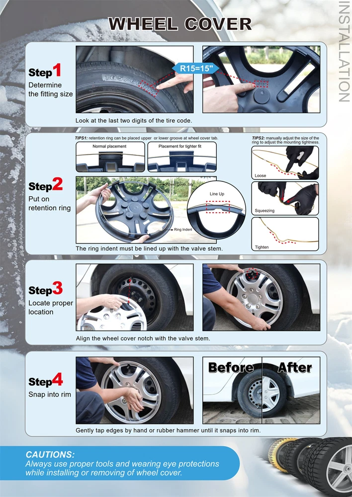 $ 23.23Glossy Silver 14 Inch 4-Piece Snap-On Wheel Covers for R14 Rims
