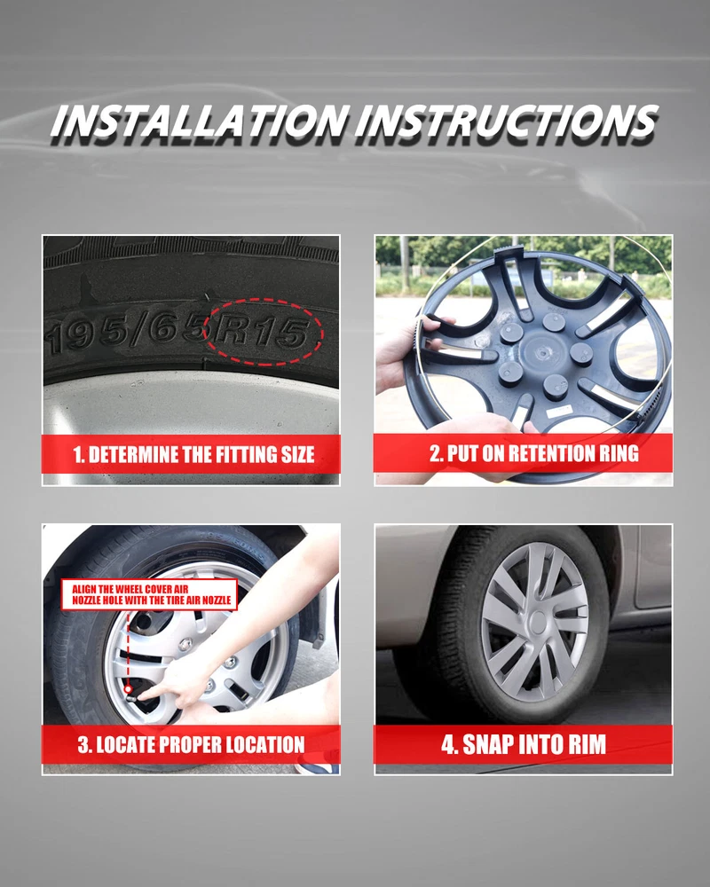 Store Categories Other Car Refrigerator Front Bumper Rear Bumper Fender Flares Inner Fenders Side Steps Running Board A-Pillar Light Mount Brackets Headlights Taillights Fog Lights LED Headlights LED Taillights LED Fog Lights Jeep Chevrolet Ford Toyota Dodge GMC Wheel Covers Features ✴ PERFECT FIT: This wheel hub cap is specifically designed to perfectly fit for 15-inch wheels, ensuring a seamless match and enhanced aesthetics. It complements the overall design of the vehicle, elevating its visual appeal. ✴ HIGH-QUALITY MATERIAL: Constructed from high-quality materials, this wheel hub cap guarantees durability and longevity. It withstands various road conditions and environmental factors encountered during daily driving, maintaining its pristine condition. ✴ EASY INSTALLATION: Installing this wheel hub cap is a breeze and requires no specialized tools or modifications. It comes with a user-friendly system, allowing for a hassle-free installation process by following the provided instructions. ✴ PROTECTIVE FUNCTION: Besides its aesthetic appeal, this wheel hub cap serves as a protective barrier for the wheels. It prevents scratches and potential damage caused by stones, debris, or other objects, safeguarding the wheel's surface. ✴ AFTER-SALES SERVICE: If There Is a Loss of Product Parts, or Any Parts of The Problem, We Can Provide After-Sales Service, Please Contact Us on The Order Page. Wheel Covers Specification ✴ Type: Hub caps ✴ Number in Pack: 4 ✴ Color: Silver Lacquer ✴ Material: PP ✴ Compatible Wheel Diameter: 15 in ✴ Finish: Glossy ✴ Installation Type: Snap-On ✴ Model: For 2013 2014 2015 2016 2017 2018 2019 2020 2021 Nissan NV200 Wheel Covers Package ✴ 1 Set of 4 Hub caps and 4 retention rings Payment Delivery details Terms of sales About us Contact us Payment We accept PayPal, credit card , Apple Pay & Google Pay etc. Delivery details All items will be shipped within 1-3 business days after payment received, we will try our best to ship out as soon as we can, hope for your understanding. Please double confirm your address and contact information, which will help the delivery faster and more accurately. Note :buyers who purchase international products need to pay import tariffs!!! Terms of sales Professional installation is highly recommended. Any problem of the item please feel free to contact us first , please D o Not leave negative feedback before that, or simply return it within 60 Days in original condition. We will resolve it for you ASAP. About us Any questions please do not hesitate to contact us directly by eBay message . We will reply you within 24 hours asap, thanks for your understanding. Contact us Should you have any problem or require any further information please feel free to contact us . If you are satisfied with our product and service, please kindly leave us a positive feedback. Popular Categories
