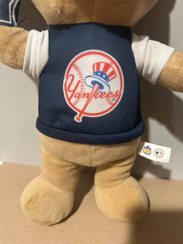 Show your support for the New York Yankees with this 15" plush figure. The bear is dressed in a Yankees uniform and comes with a foam finger to cheer them on. This officially licensed product is perfect for any fan of the team, and makes a great addition to any sports memorabilia collection. The bear is made by Good Stuff and is of high quality. It is suitable for one size and is designed in the team's colors of blue. This plush figure is a must-have for any fan of the New York Yankees, and is sure to be a hit with fans of all ages.