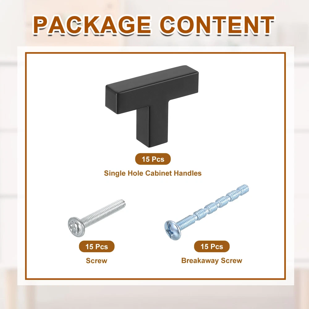 Document Description[Sturdy Material] - Our single-hole drawer handle is made of stainless steel, and the surface is electroplated, which is rust-proof and corrosion-resistant, strong and not easy to break, and has a long service life[Rectangular Design] - The cabinet knob adopts a rectangular design, with a simple and beautiful appearance, which can be matched with a variety of styles of cabinets and drawers, easily enhancing the beauty of cabinet doors and drawers; comfortable to hold, making it easier for you to use[Easy to Install] - The single hole design makes installation more convenient. Just screw the included screws into the hole of the knob, and you can easily put the handle and the cabinet door together. It is not easy to fall off and easy to pull out the drawer[Wide Application] - These pull knobs are widely used in various kitchen cabinets, desk drawers, cabinets, doors, dressing tables, wardrobes, closets, storage cabinets, boxes, bookcases and dressing tables, making your home elegant and stylishSpecificationMaterial: Stainless SteelColor: BlackTotal Size: 50 x 12 x 35mm/1.97 x 0.47 x 1.38inch(L*W*H)Screw Size: M4 x 25mmBreakaway Screw Size: M4 x 45mmPackage Includes15Pcs x Single Hole Cabinet Handles15Pcs x Screw15Pcs x Breakaway Screw 15 Pack Single Hole Cabinet Handles, 2"/50mm Kitchen Cabinet Handles, Black Description [Sturdy Material] - Our single-hole drawer handle is made of stainless steel, and the surface is electroplated, which is rust-proof and corrosion-resistant, strong and not easy to break, and has a long service life [Rectangular Design] - The cabinet knob adopts a rectangular design, with a simple and beautiful appearance, which can be matched with a variety of styles of cabinets and drawers, easily enhancing the beauty of cabinet doors and drawers; comfortable to hold, making it easier for you to use [Easy to Install] - The single hole design makes installation more convenient. Just screw the included screws into the hole of the knob, and you can easily put the handle and the cabinet door together. It is not easy to fall off and easy to pull out the drawer [Wide Application] - These pull knobs are widely used in various kitchen cabinets, desk drawers, cabinets, doors, dressing tables, wardrobes, closets, storage cabinets, boxes, bookcases and dressing tables, making your home elegant and stylish Specification Material: Stainless Steel Color: Black Total Size: 50 x 12 x 35mm/1.97 x 0.47 x 1.38inch(L*W*H) Screw Size: M4 x 25mm Breakaway Screw Size: M4 x 45mm Package Includes 15Pcs x Single Hole Cabinet Handles 15Pcs x Screw 15Pcs x Breakaway Screw Hot Item Payment 1.We accept eBay payment . 2.Payment must be received within 7 business days of auction closing. Shipping 1.We ship to your eBay or Paypal address. Please make sure your eBay and Paypal address is correct before you pay. 2.Items will be shipped within 1-3 business day when we received payment. 3.Delivery time depends on destination and other factors. Description Policy 15 Pack Single Hole Cabinet Handles, 2"/50mm Kitchen Cabinet Handles, Black Description [Sturdy Material] - Our single-hole drawer handle is made of stainless steel, and the surface is electroplated, which is rust-proof and corrosion-resistant, strong and not easy to break, and has a long service life [Rectangular Design] - The cabinet knob adopts a rectangular design, with a simple and beautiful appearance, which can be matched with a variety of styles of cabinets and drawers, easily enhancing the beauty of cabinet doors and drawers; comfortable to hold, making it easier for you to use [Easy to Install] - The single hole design makes installation more convenient. Just screw the included screws into the hole of the knob, and you can easily put the handle and the cabinet door together. It is not easy to fall off and easy to pull out the drawer [Wide Application] - These pull knobs are widely used in various kitchen cabinets, desk drawers, cabinets, doors, dressing tables, wardrobes, closets, storage cabinets, boxes, bookcases and dressing tables, making your home elegant and stylish Specification Material: Stainless Steel Color: Black Total Size: 50 x 12 x 35mm/1.97 x 0.47 x 1.38inch(L*W*H) Screw Size: M4 x 25mm Breakaway Screw Size: M4 x 45mm Package Includes 15Pcs x Single Hole Cabinet Handles 15Pcs x Screw 15Pcs x Breakaway Screw Hot Item Payment 1.We accept eBay payment . 2.Payment must be received within 7 business days of auction closing. Shipping 1.We ship to your eBay or Paypal address. Please make sure your eBay and Paypal address is correct before you pay. 2.Items will be shipped within 1-3 business day when we received payment. 3.Delivery time depends on destination and other factors.