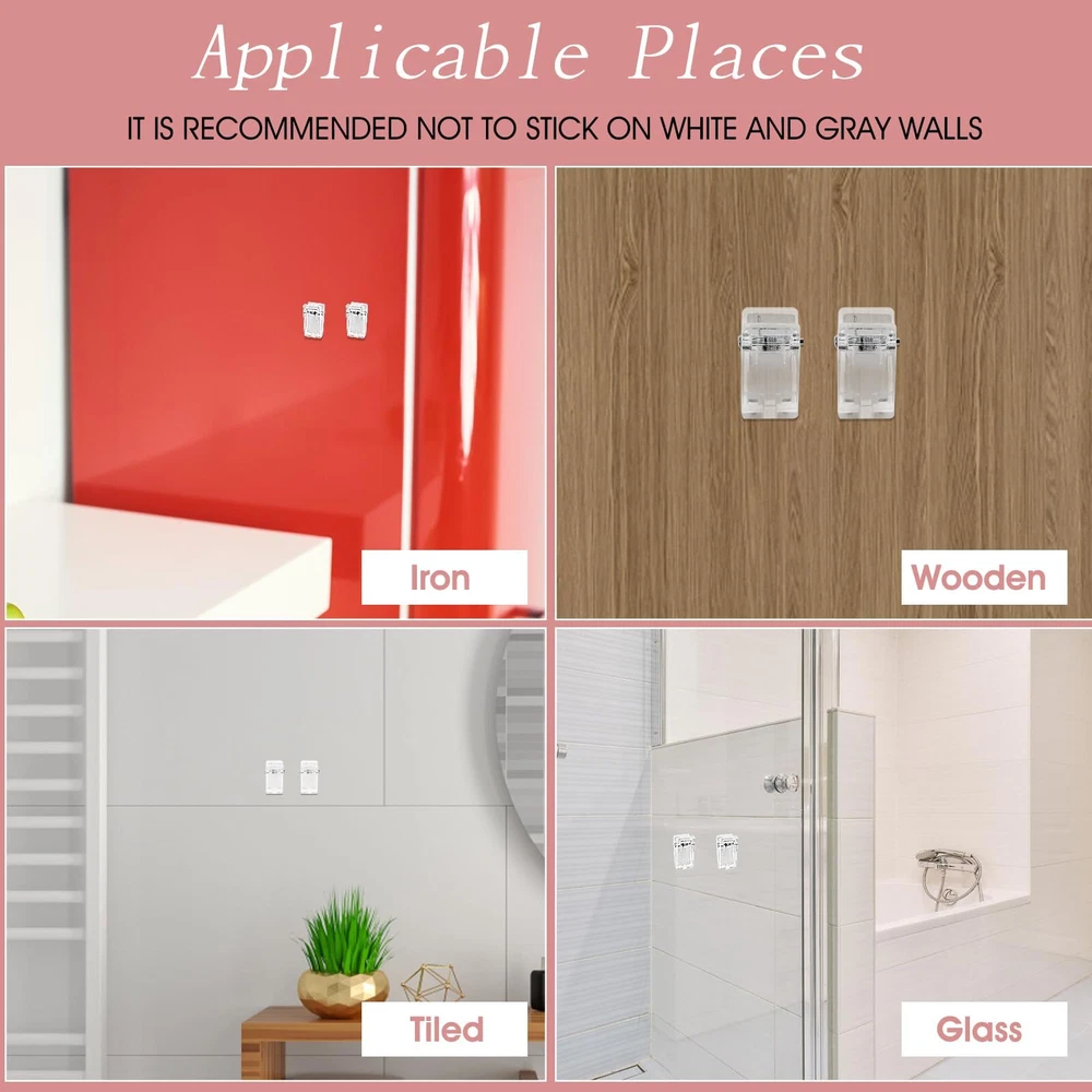 Feature: Do you need a convenient way to hang your blanket on the wall? Do you need some little clips to make hanging your towel poster easier on the wall? I think our self-adhesive small clip will not only meet these needs of yours, but also make you feel that it is of high quality and affordable price. Because these double-sided tape spring clips are plentiful and easy to replace, these self-adhesive clips are great for clamping things to your wall. Such as photos, scrapbooks, posters, papers, etc. so you can easily access what you want and keep your house tidy. Product Information: Product Name: Self-Adhesive Spring Clip Color: Transparent Material: Plastic Size: 2.55*1.3*1.15cm/1*0.51*0.46inch Net Weight: 31g Gross Weight: 32g Packaging: Bagged Packing Size: 15*10.5*1.5cm Package Included: 15 PCS Rectangular Wall Clip High Quality Material: Our wall clips are made of high quality plastic, sturdy and durable. In addition, the rust-free wire spring can increase its durability and service life, it is comfortable to hold, durable, easy to use and store, giving you a good use experience Self-Adhesive Design: Our wall clips are self-adhesive, each clip uses a good adhesive and is very sticky. Strong and not easy to fall off, it allows you to fasten the clip quickly and easily, which is very convenient for our daily use Simple and Easy to Use: This tapestry clip is very simple to use, you only need to peel off the protective paper on the back, and then you can directly stick it on any clean and smooth wall or other places you want, and the double-sided tape clip can be quickly fixed . It is recommended to hang things after pasting for 24 hours for better adhesion Sufficient Quantity: you will get 15 double-sided tape spring clips, size 1*0.51*0.46inch. So many compact clothespins are well made, small in size and light in weight, enough to meet your daily needs and replacement, bringing convenience to your life Versatility: These adhesive clips are versatile, you can stick them smoothly anywhere, suitable for walls or other clean and smooth surfaces. Suitable for photo wall decoration, home or office decoration, Christmas tree decoration, etc